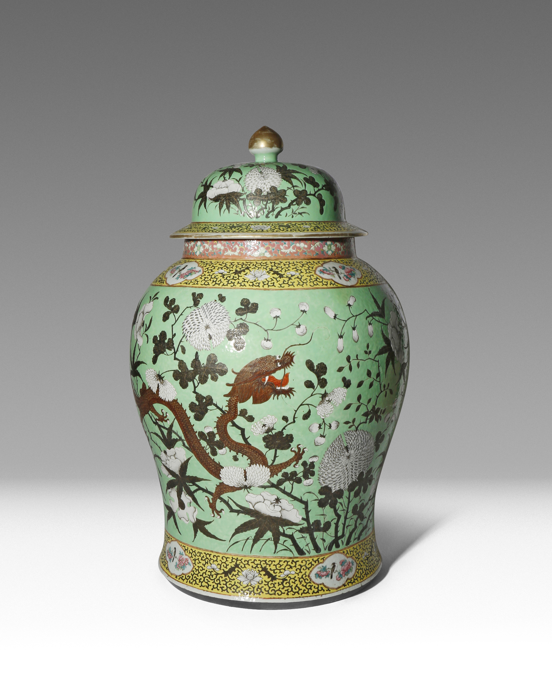A LARGE CHINESE DAYAZHAI STYLE GREEN-GROUND BALUSTER VASE AND COVER