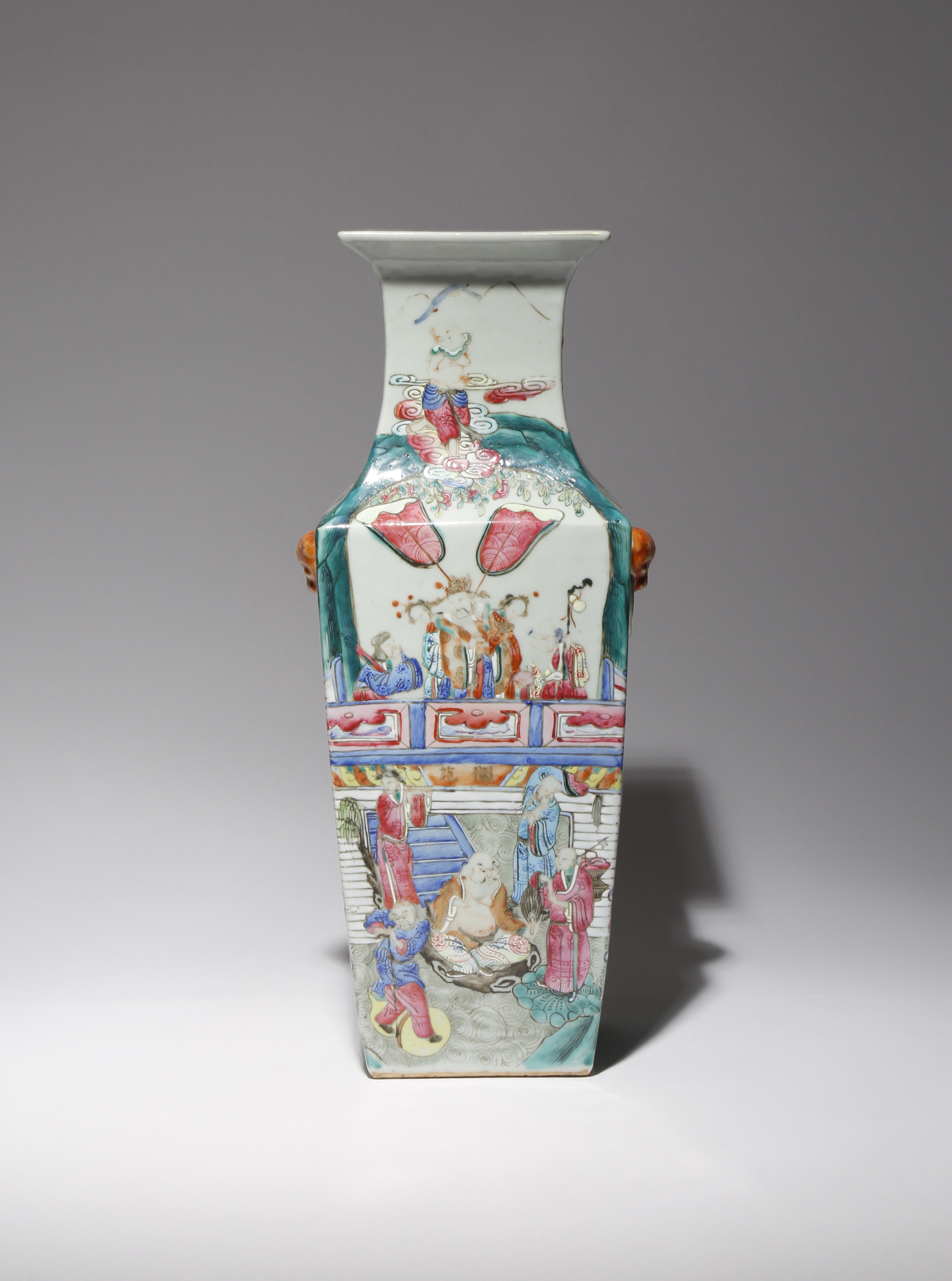 A CHINESE CANTON FAMILLE ROSE SQUARE-SECTION VASE