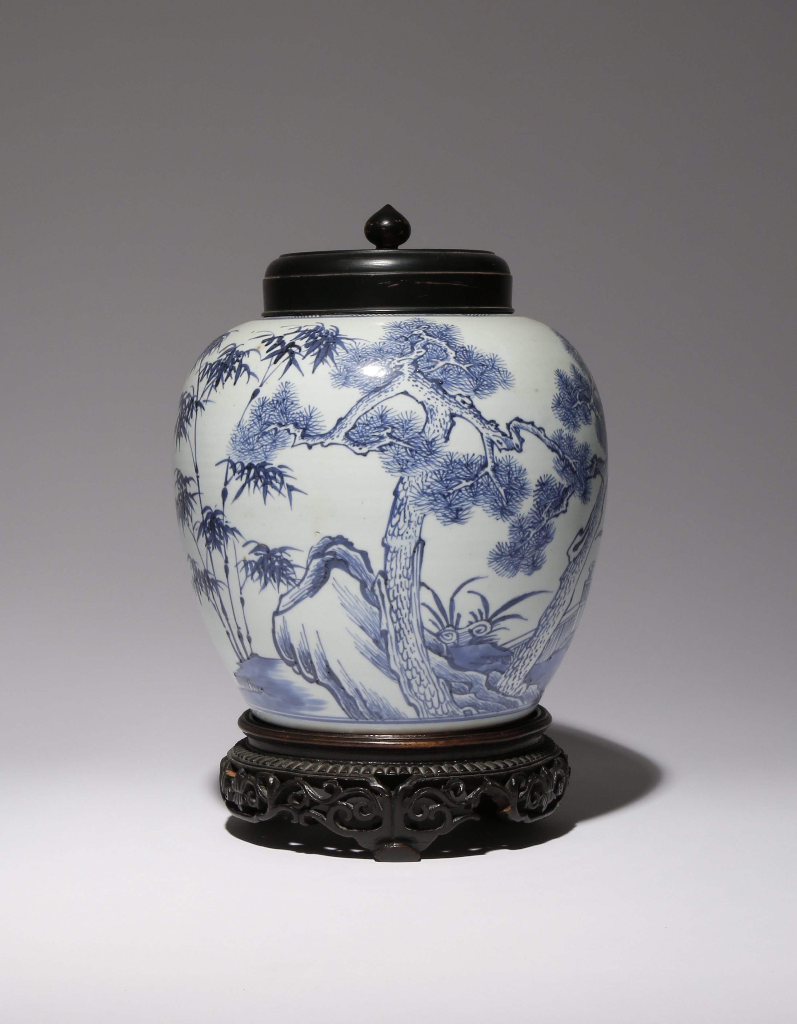 A CHINESE BLUE AND WHITE 'THREE FRIENDS OF WINTER' OVOID VASE