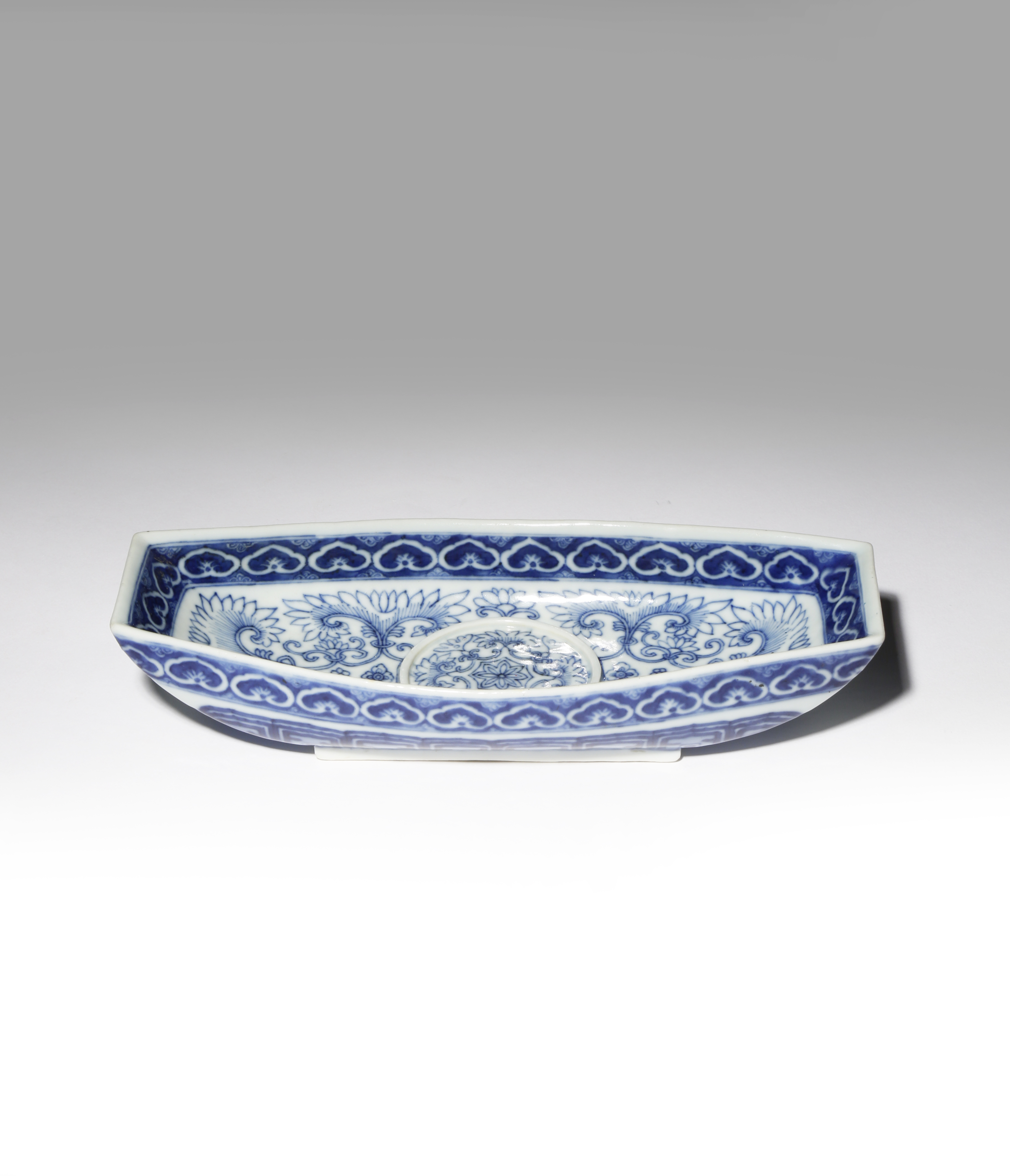 A CHINESE BLUE AND WHITE INGOT-SHAPED CUP STAND
