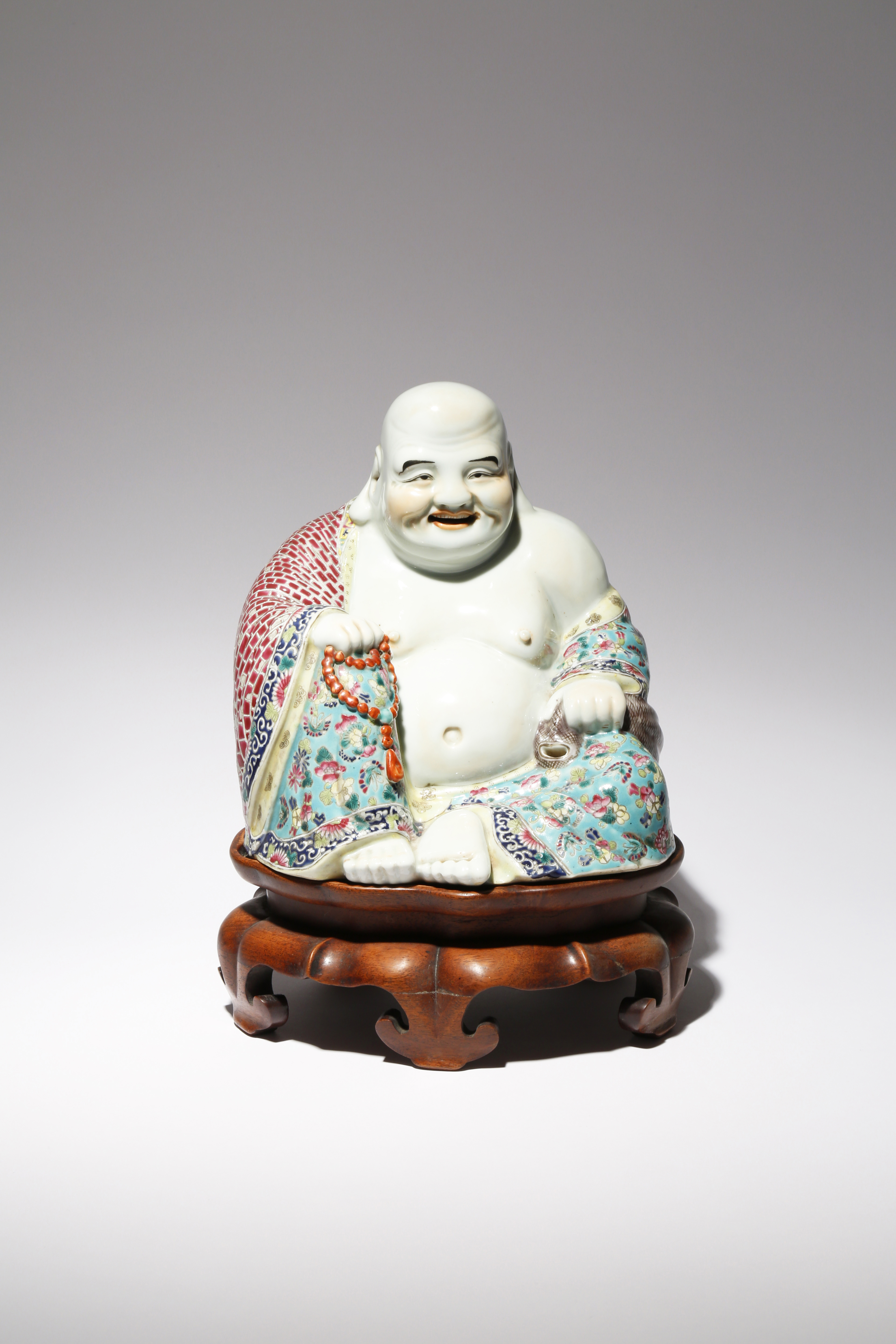 A LARGE CHINESE FAMILLE ROSE FIGURE OF BUDAI HE SHANG