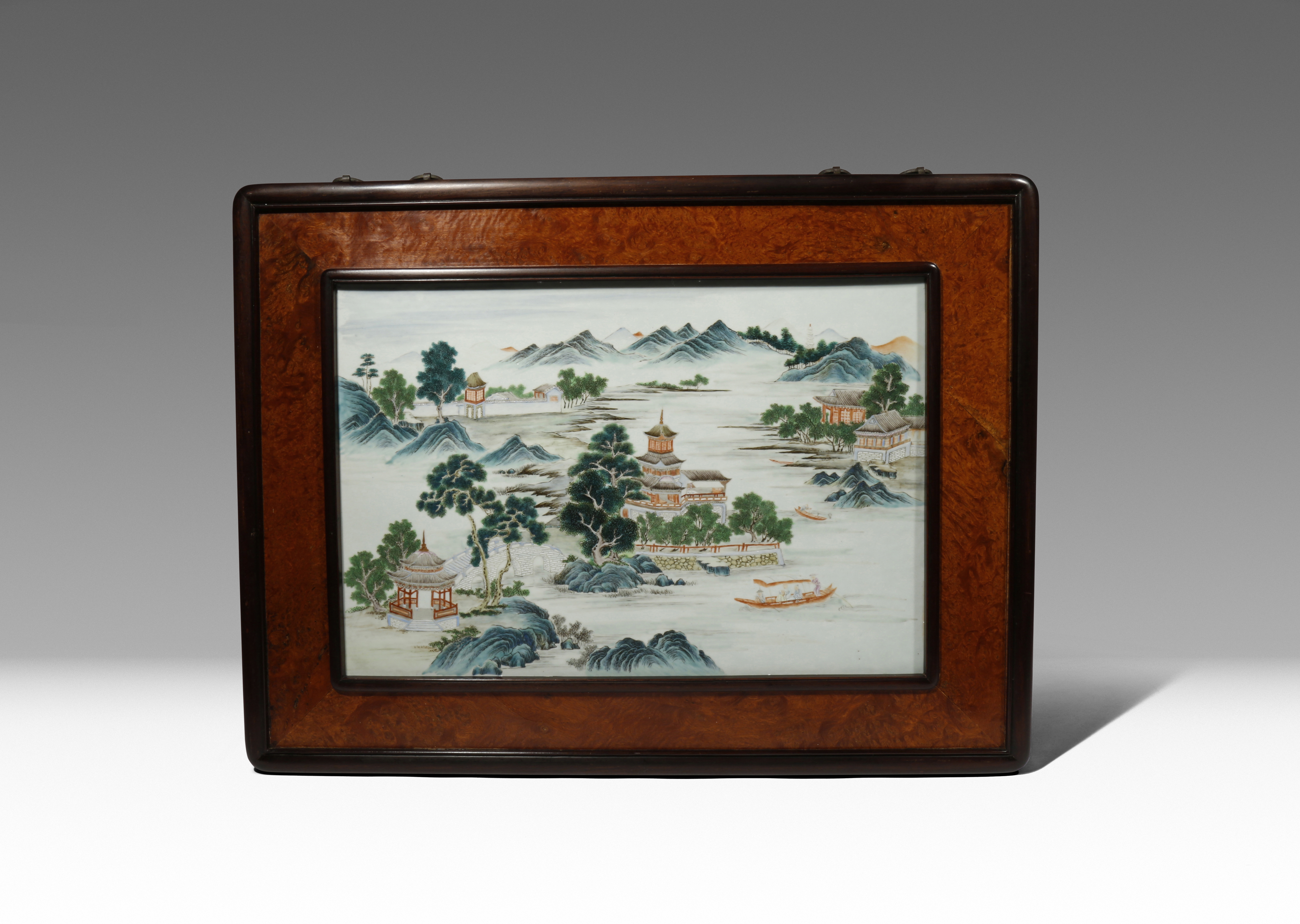 A CHINESE ENAMELLED PORCELAIN RECTANGULAR 'LANDSCAPE' PLAQUE