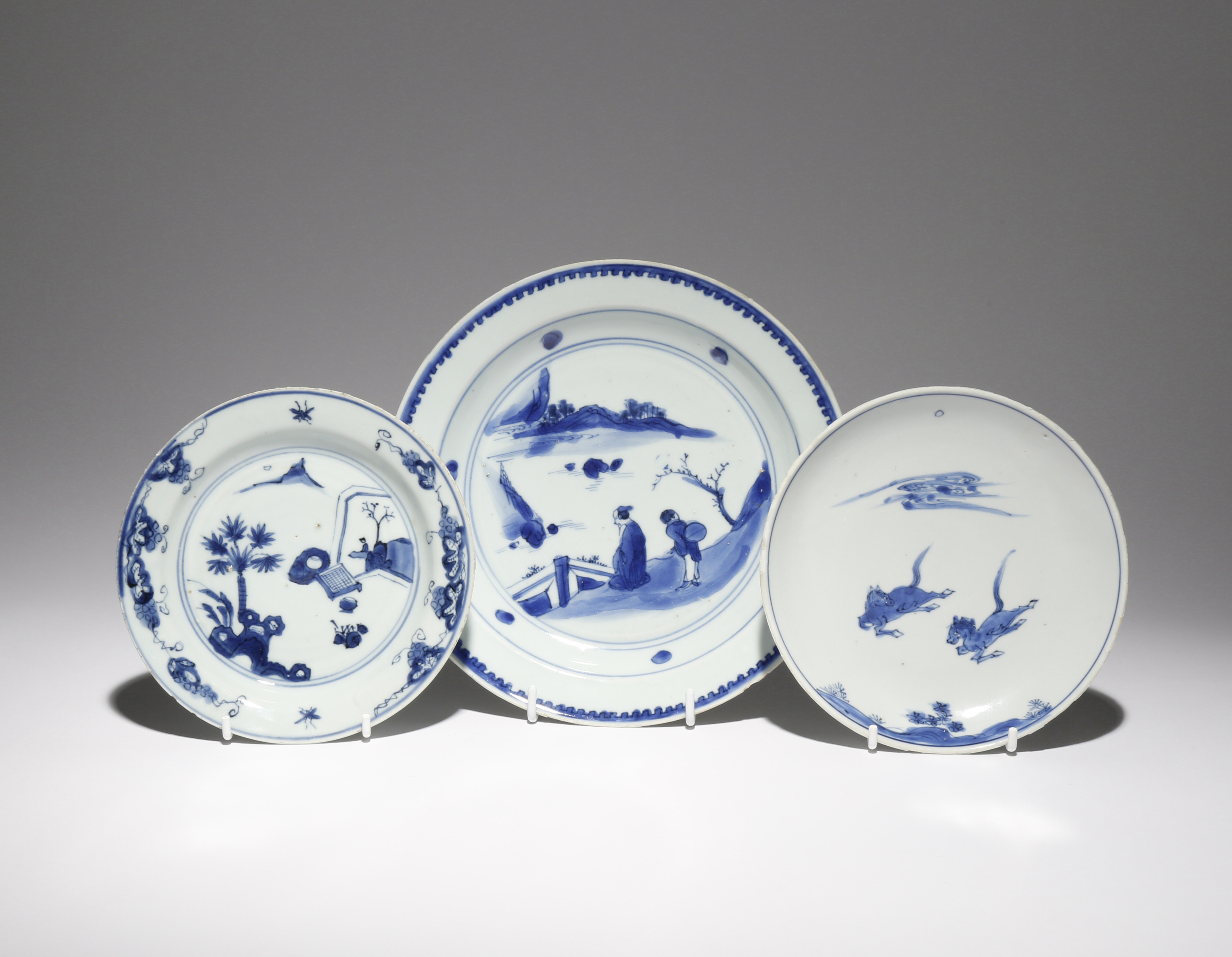 The largest dish was included in T Edo Inouye and Son's 22nd anniversary exhibition entitled 'Collected and Selected: Seventy-Seven Dishes from the Late Ming Dynasty' from 1st-29th April 2017. Also, see Masahiko Kawahara, Ko-sometsuke, p.147 no.581, for a related plate from the same set illustrated and discussed.