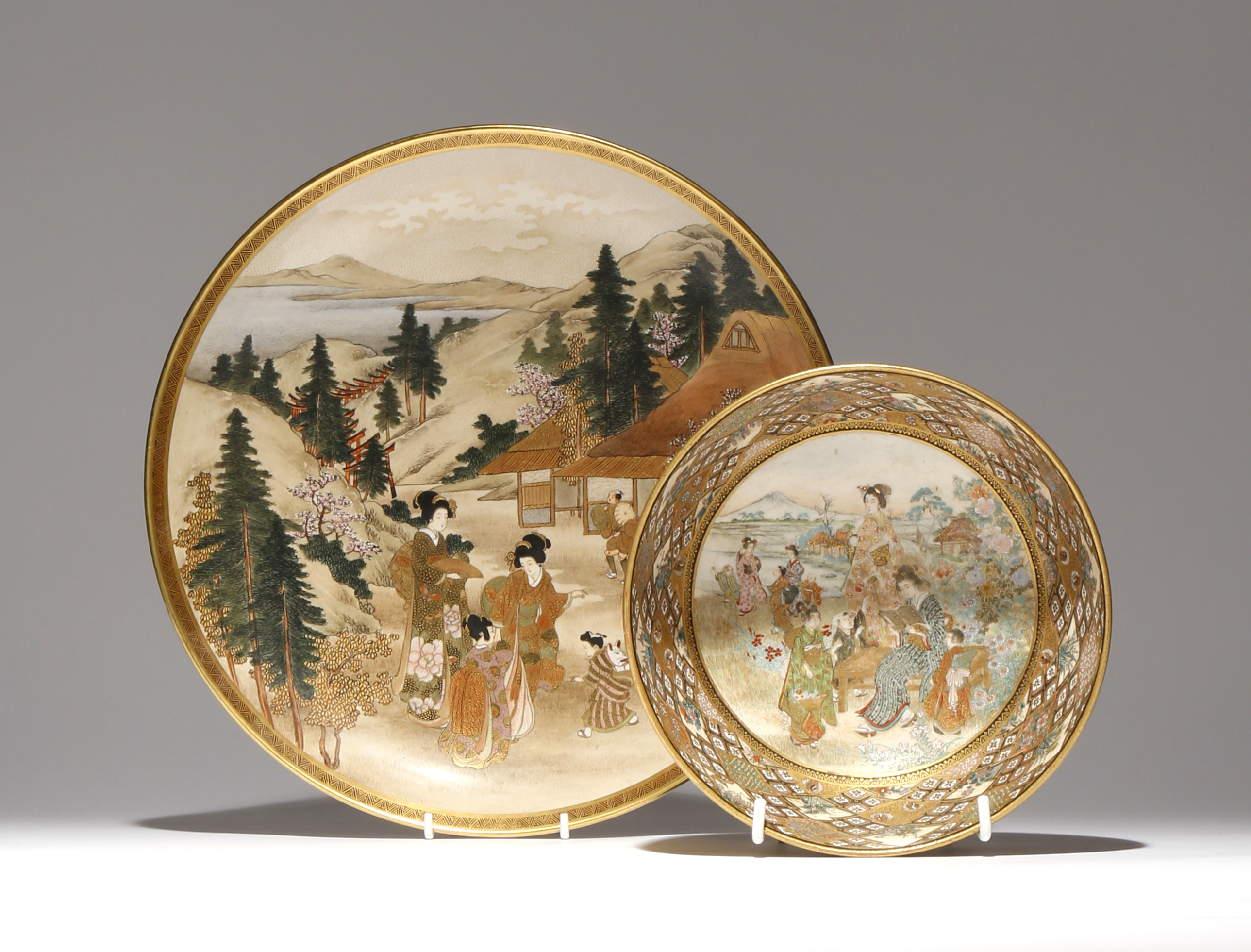 A LARGE JAPANESE SATSUMA DISH AND A BOWL
