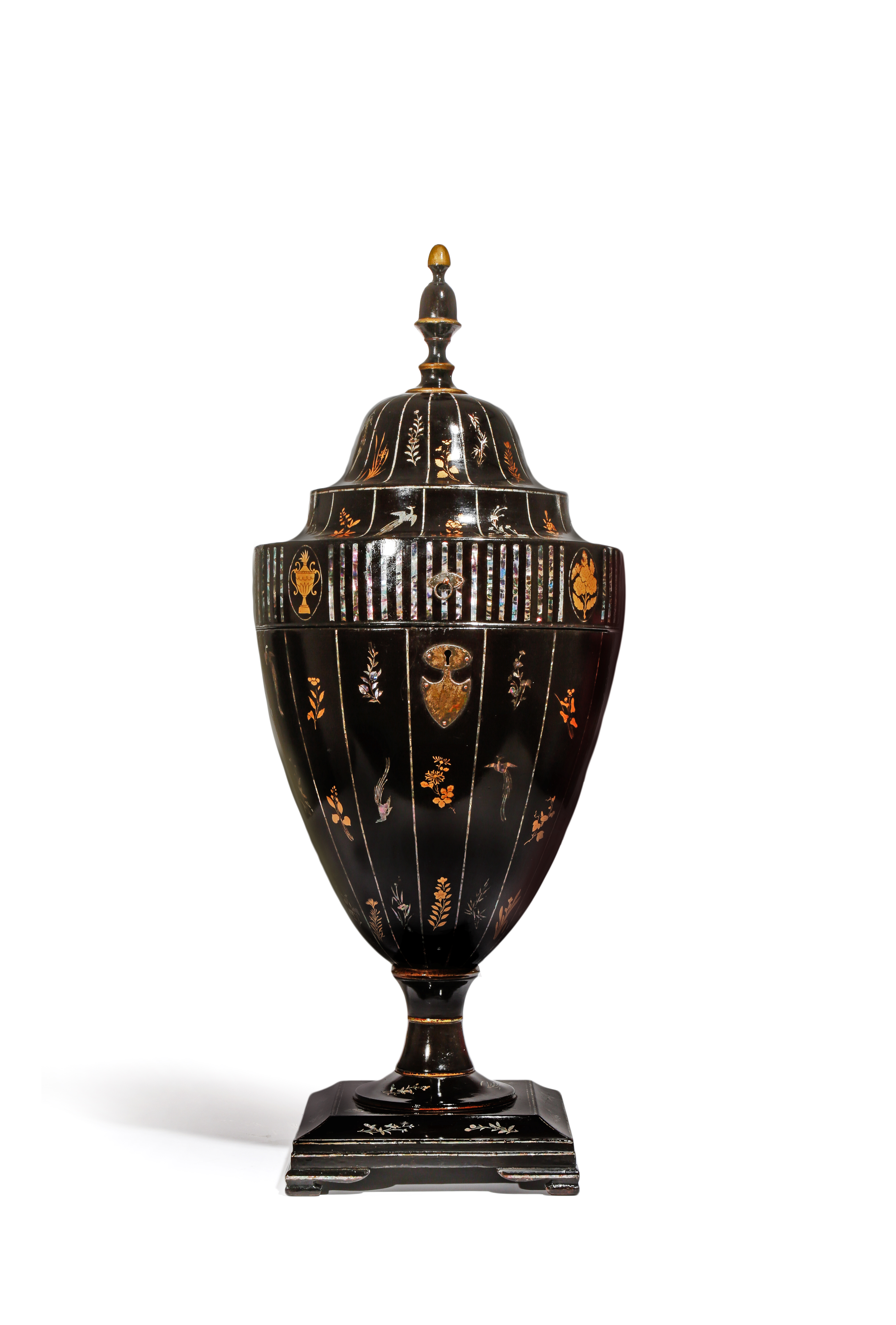 Cf. O Impey and C Jörg, Japanese Export Lacquer 1580-1850, pp.326-328 n.637, for a closely related knife urn at the Peabody Essex Museum, Salem, acquired by Captain Samuel Gardner Derby in 1801. Gardner Derby was Captain of the Margaret of Salem and traded in Nagasaki under charter from the VOC (Vereenigde Oostindische Compagnie), the Dutch East India Company.