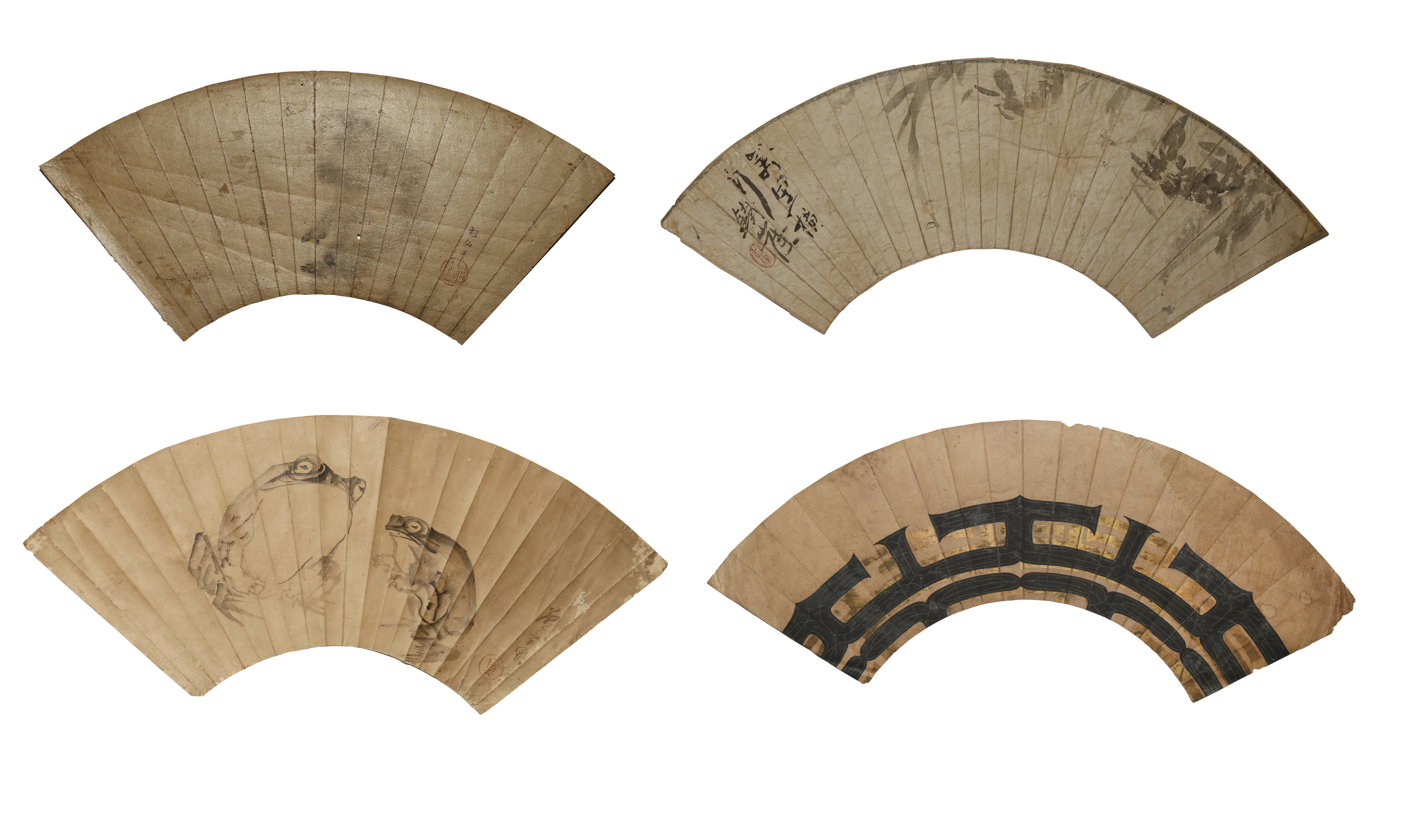 FOUR JAPANESE PAPER FAN PAINTINGS