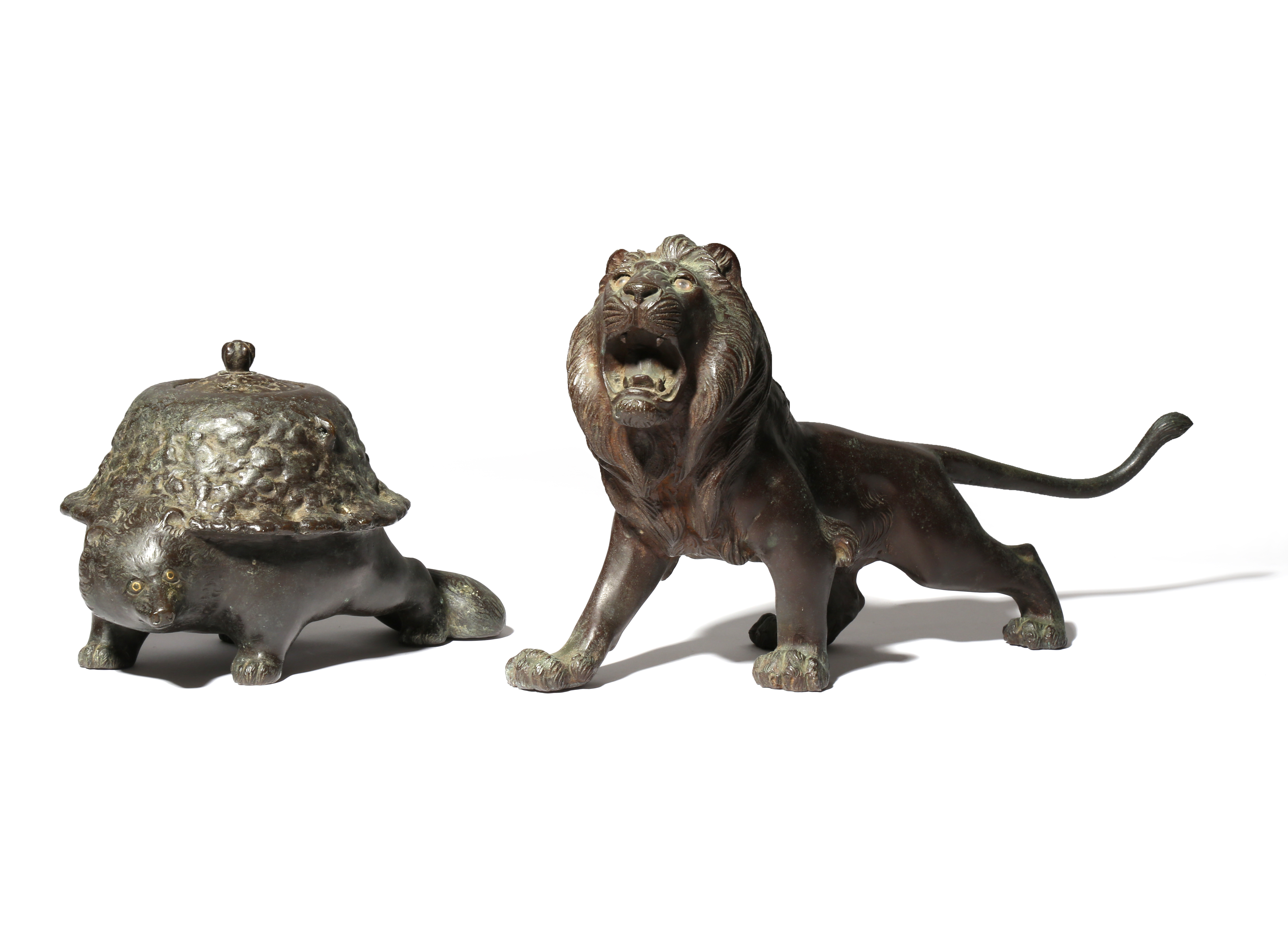 TWO JAPANESE BRONZE MODELS OF ANIMALS