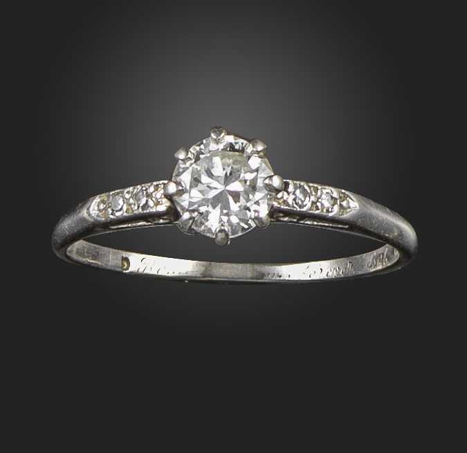 An Edwardian diamond solitaire ring, the old circular-cut diamond weighs approximately 0.60cts, with further old circular-cut diamonds to the shoulders in platinum, size O 1/2