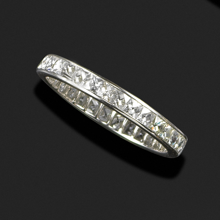 A diamond eternity ring, channel-set with French-cut diamonds in platinum, size O