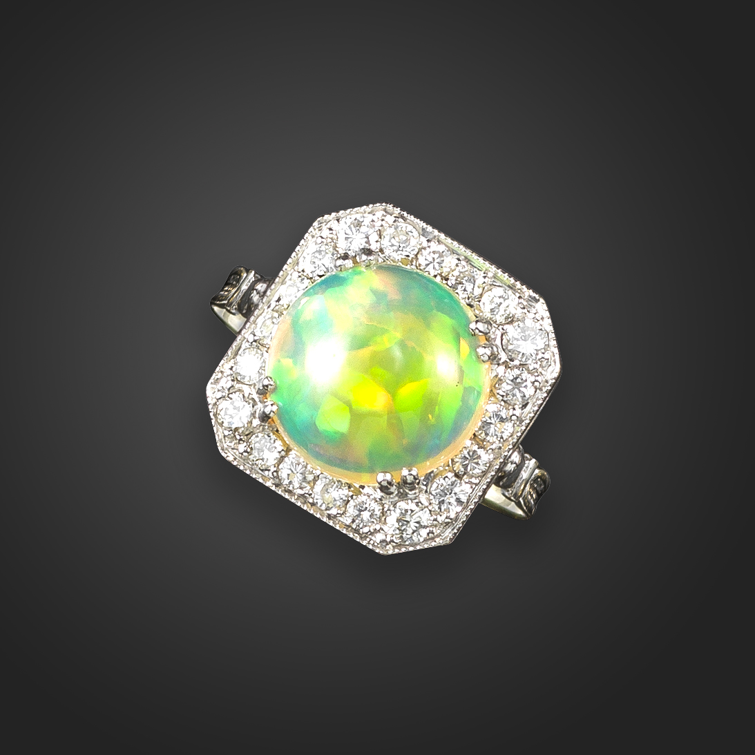 An opal and diamond cluster ring