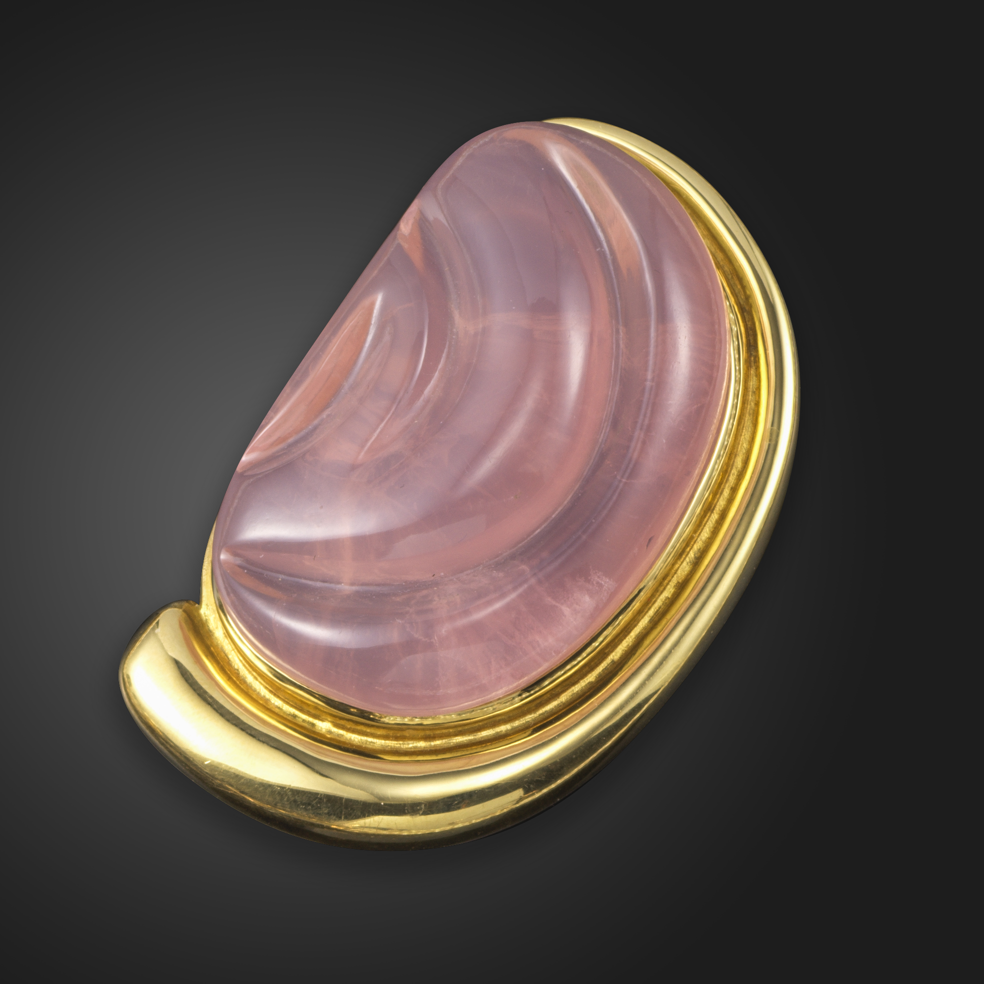A 'Forma Livre' rose quartz-set gold brooch pendant by Burle Marx, the carved quartz is rubover set in gold, signed , stamped 18K and Made in Brazil, 6cm high