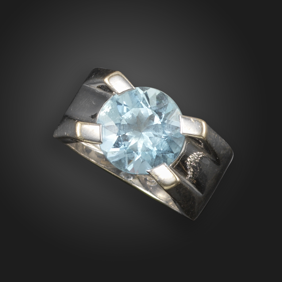 An aquamarine single-stone ring by Cartier, set with a circular-cut aquamarine in heavy four claw white gold setting, signed Cartier 1999 and numbered 177306 with French control marks and maker's lozenge, size K 1/2, case