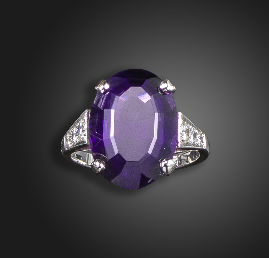 An amethyst and diamond ring