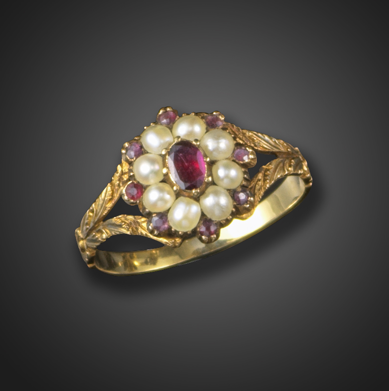 A Regency garnet and seed pearl ring