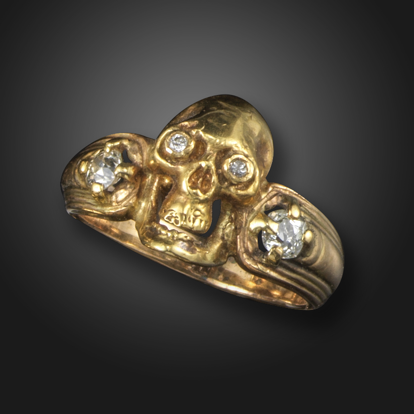 A diamond-set skull ring