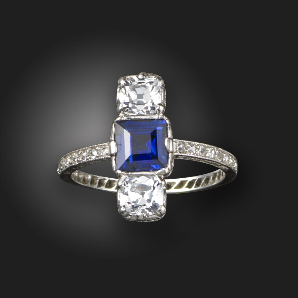 An early 20th century sapphire and diamond three-stone ring