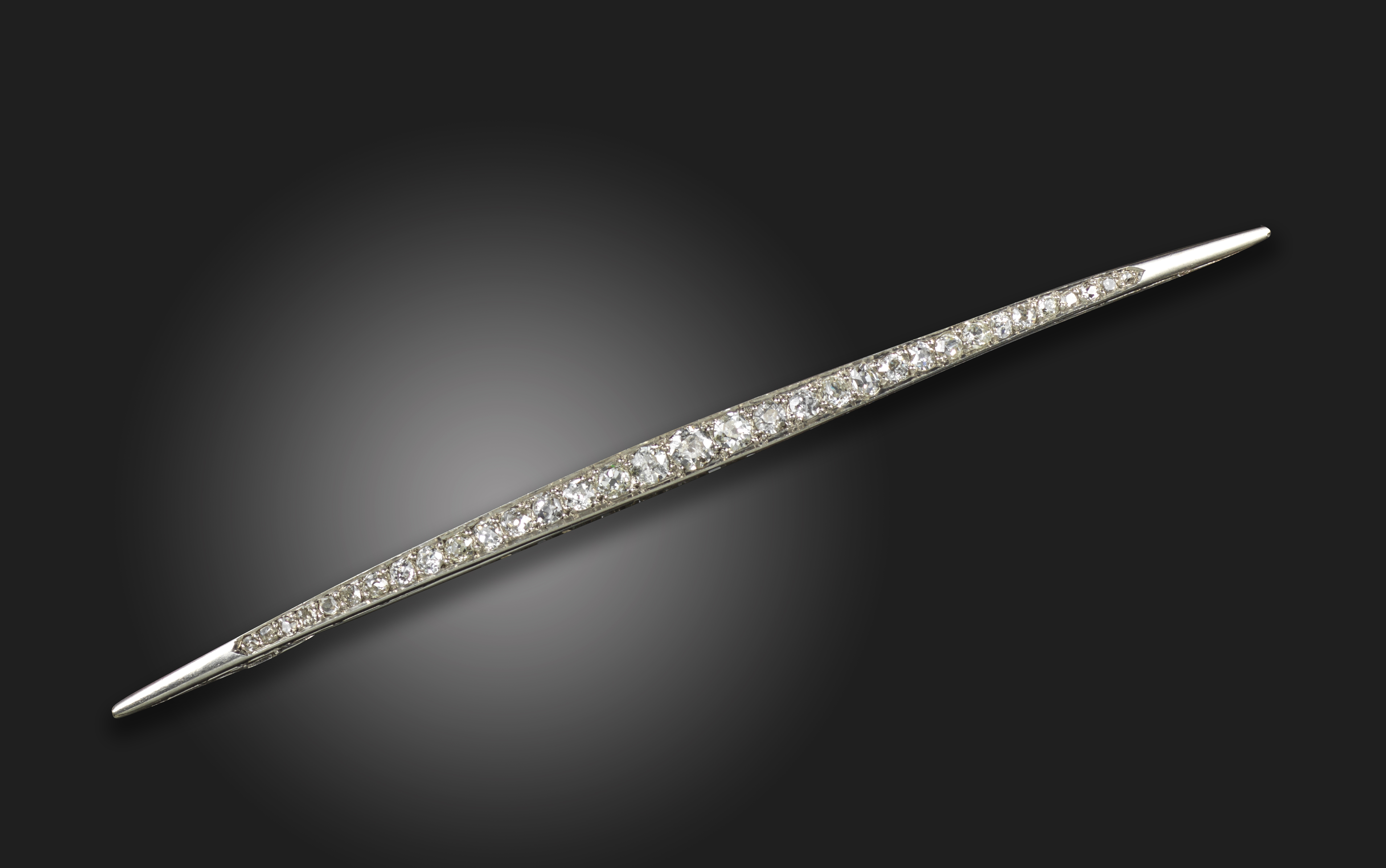 An early 20th century diamond-set hair slide, set with a line of graduated old circular-cut diamonds in platinum, 13cm long
