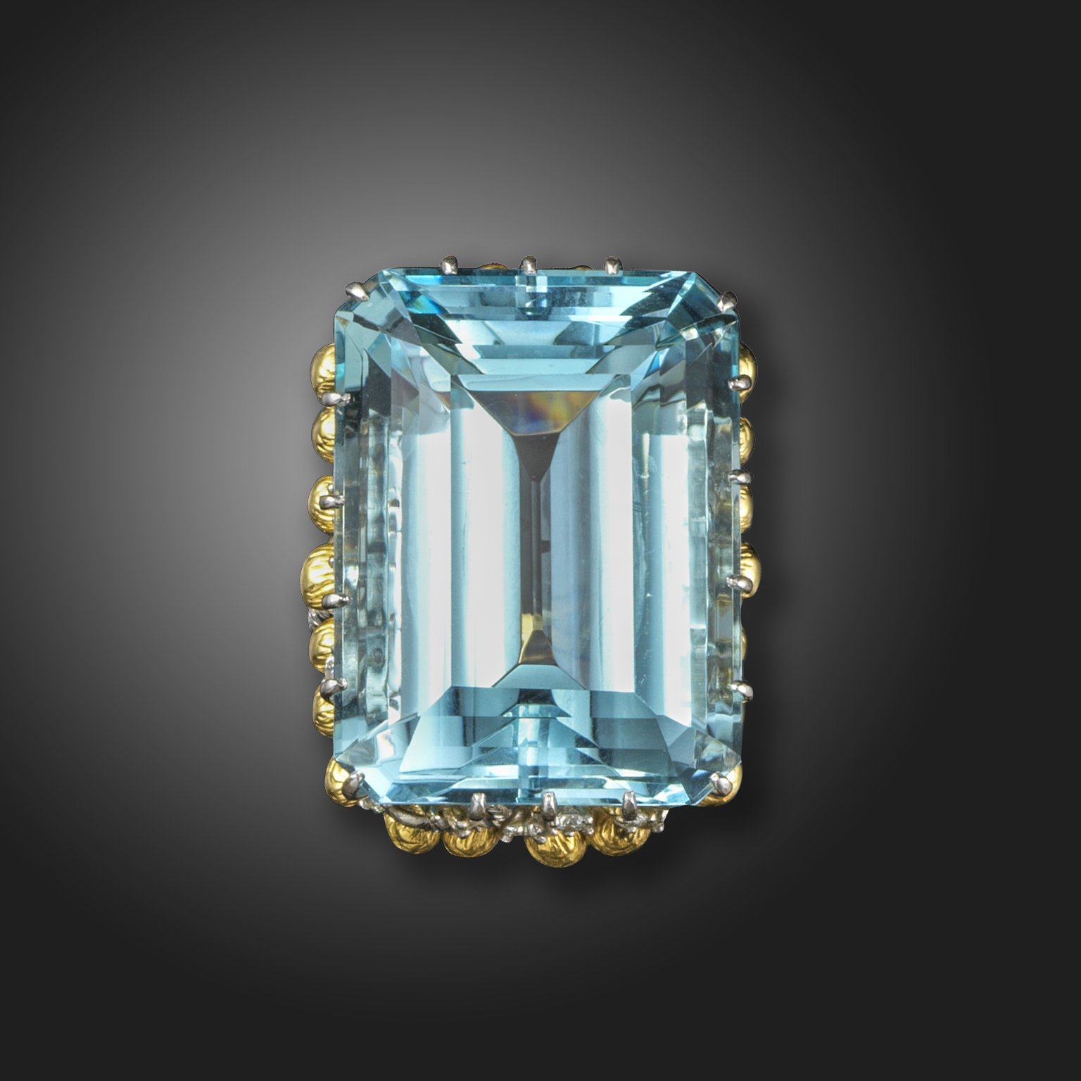 A large aquamarine and diamond ring in the style of Julius Cohen