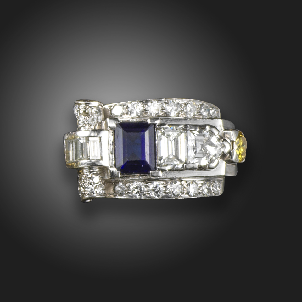 An Odeonesque sapphire and diamond ring