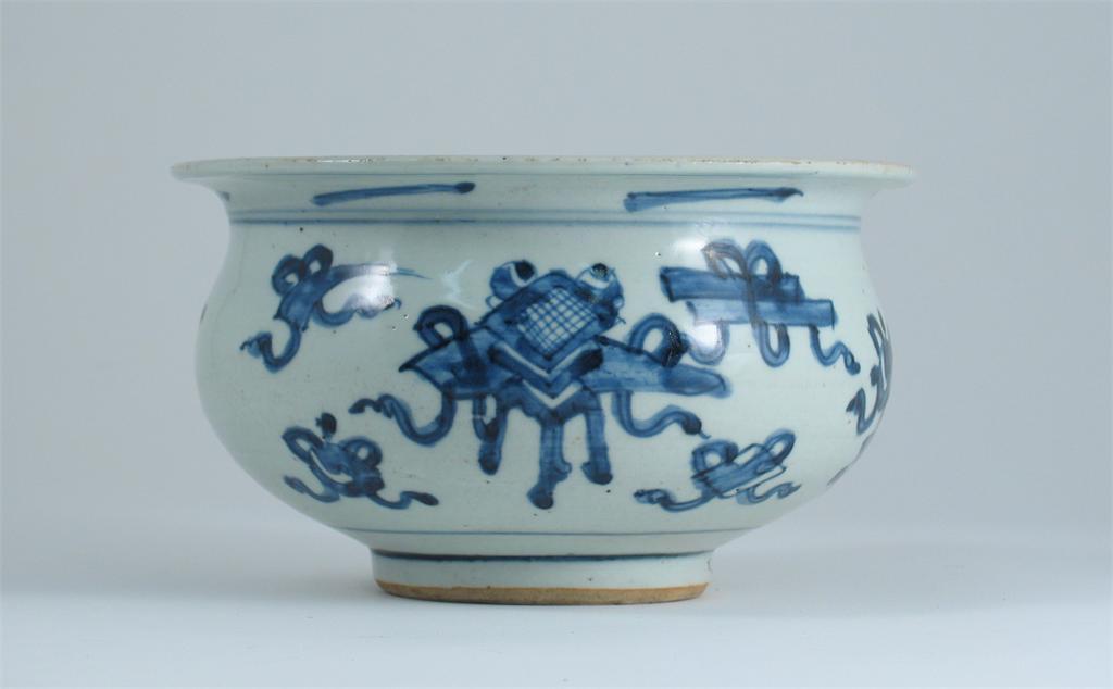 A Chinese blue and white bomb censer