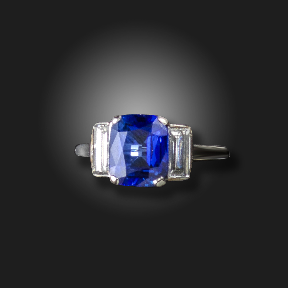 Accompanied by report number 80274-55 dated 4 September 2020 from GCS stating that the cushion-cut sapphire weighs approximately 2.50cts, and is a natural sapphire with no indications of heat treatment. Origin: Sri Lanka (Ceylon)