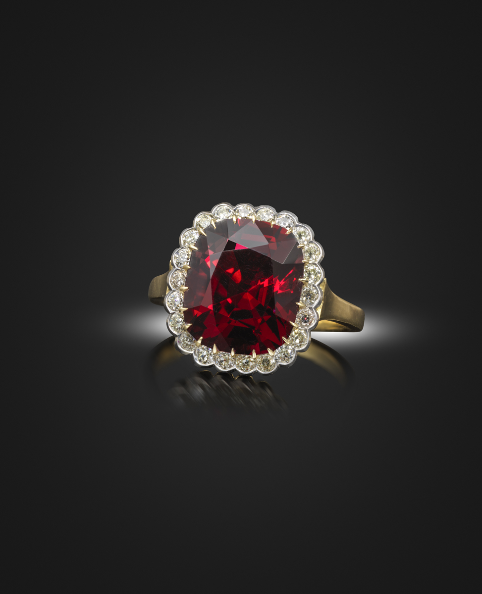 Accompanied by report number110206 dated 8 October 2019 from SSEF stating that the cushion-cut spinel weighs 5.605cts and is a natural red spinel with no indications of treatment. Origin: Burma (Myanmar)