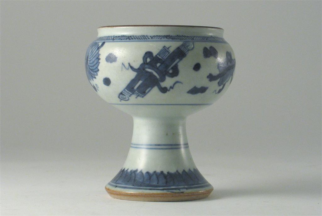 A Chinese blue and white stem bowl