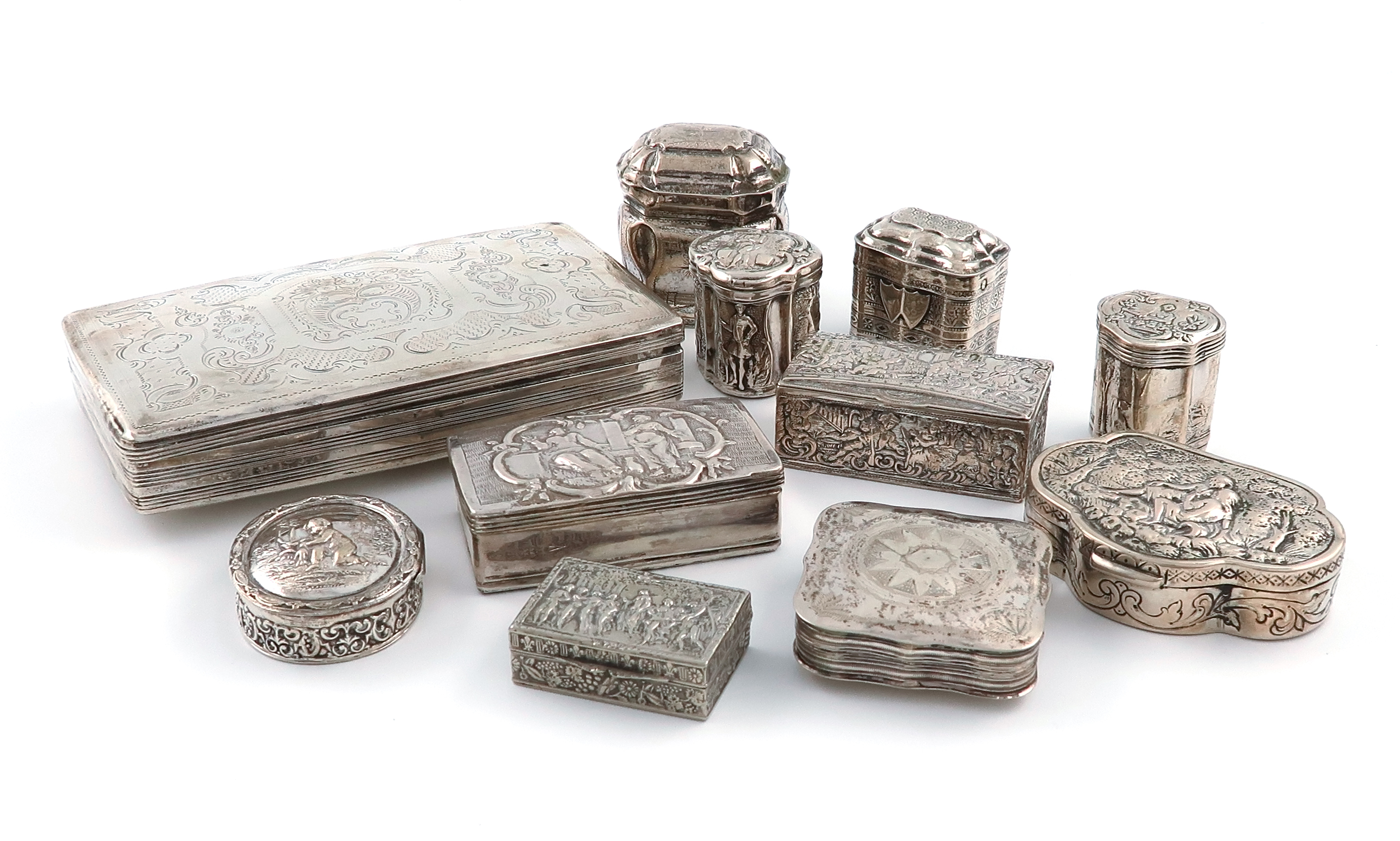 A mixed lot of Dutch and continental silver boxes