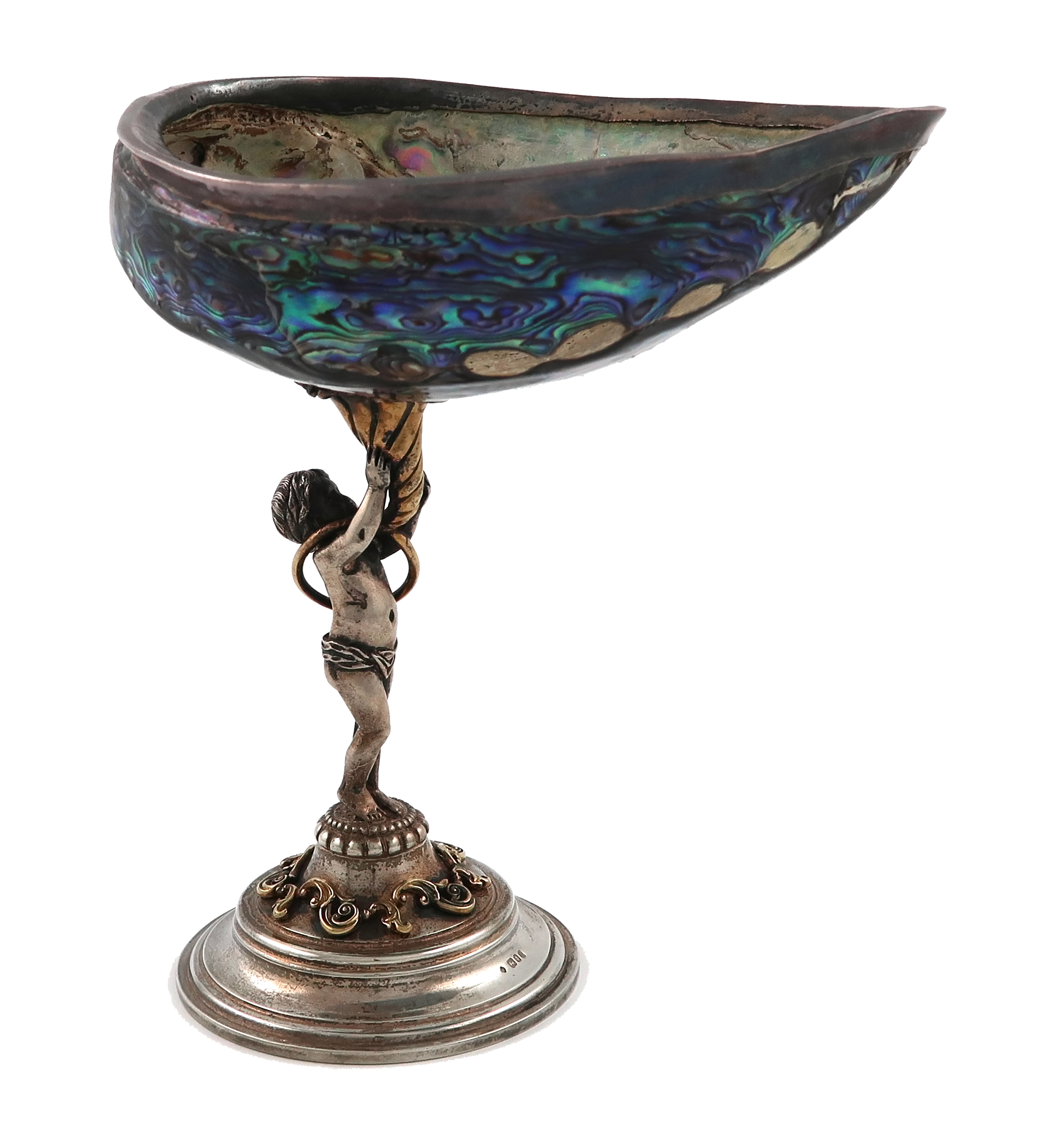 A Continental silver mounted abalone shell comport
