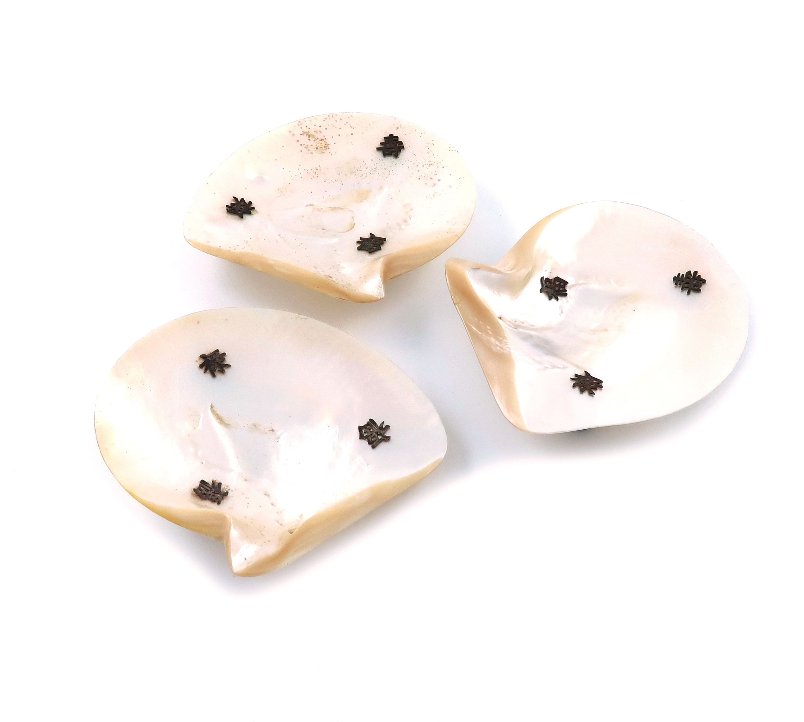 A set of three Chinese metalware and mother-of-pearl dishes,