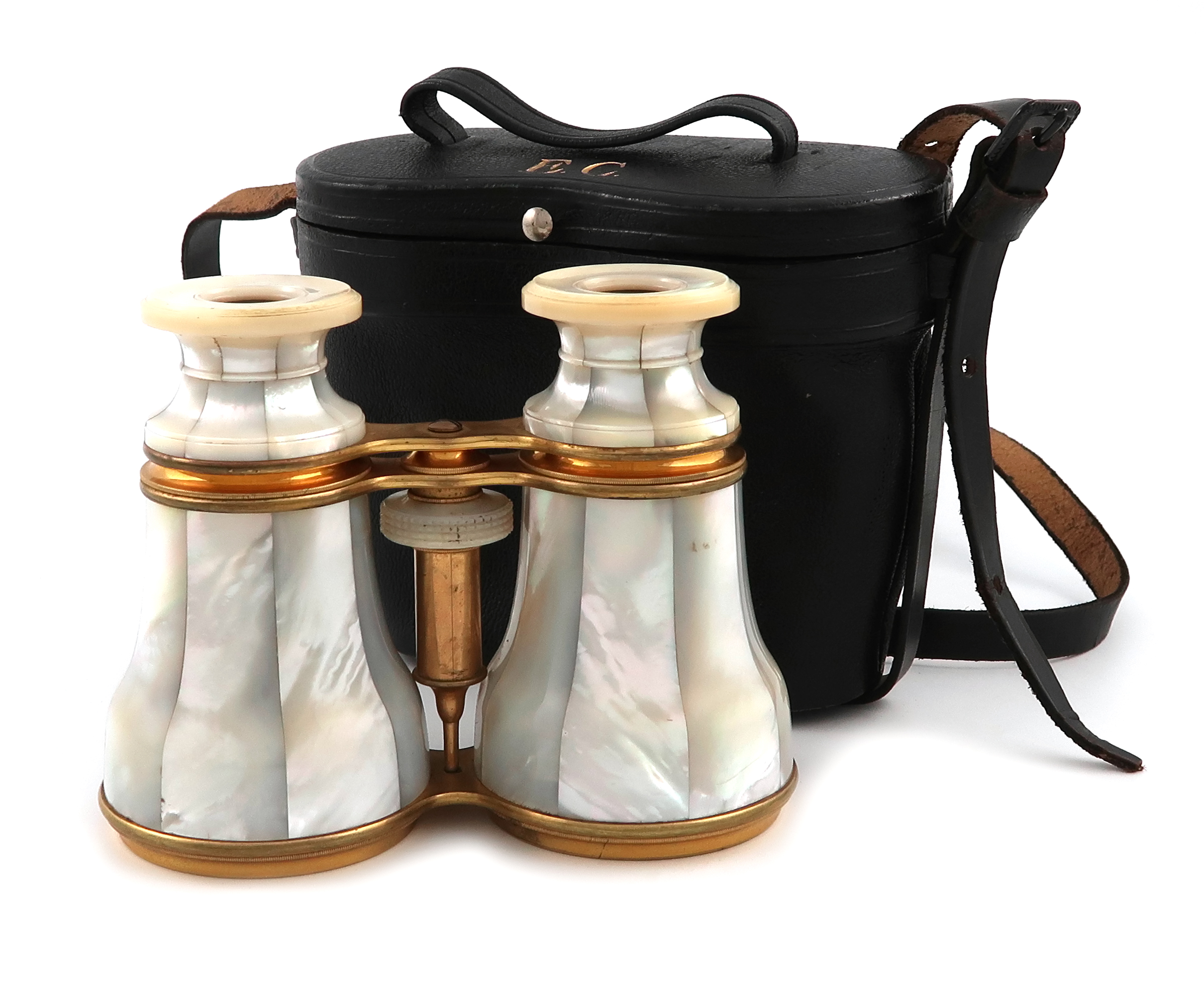 A pair of large French gilt-metal and mother-of-pearl opera glasses