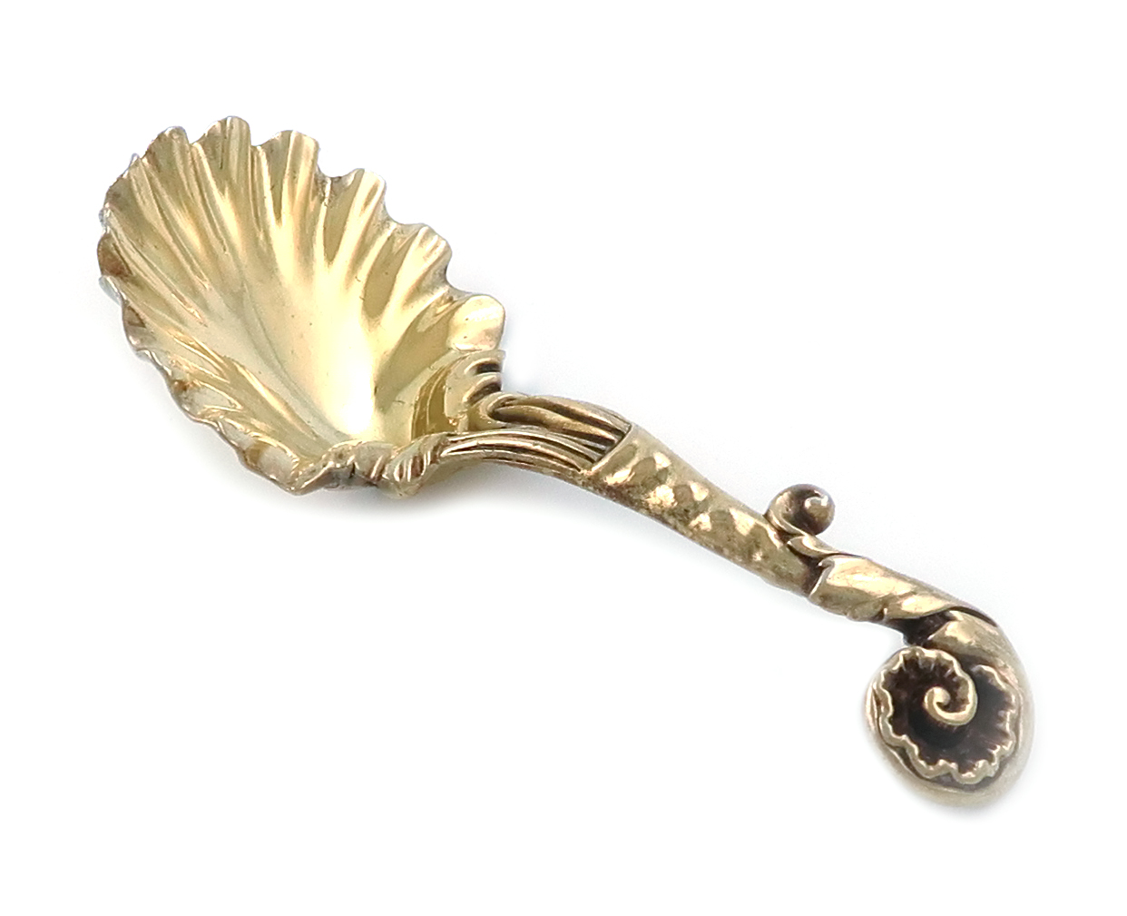 shell bowl, foliate scroll handle with a shell motif, length 9.7cm, approx. weight 1.3oz.