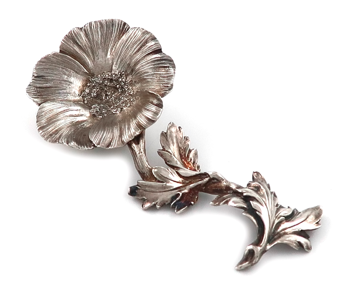 flower head bowl, the handle modelled as the stem with leaves, length 9.8cm, approx. weight 1.3oz.