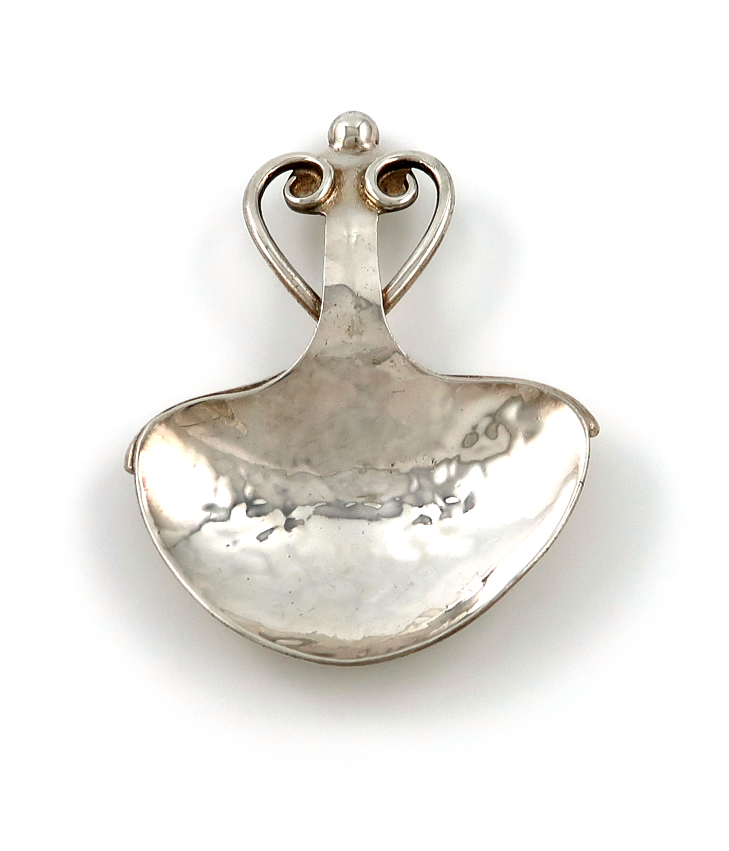 By A. E. Jones, an Arts and Crafts silver caddy spoon,