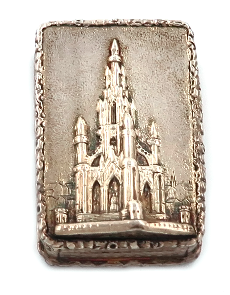 A Victorian silver 'castle-top' vinaigrette, The Scott Memorial,