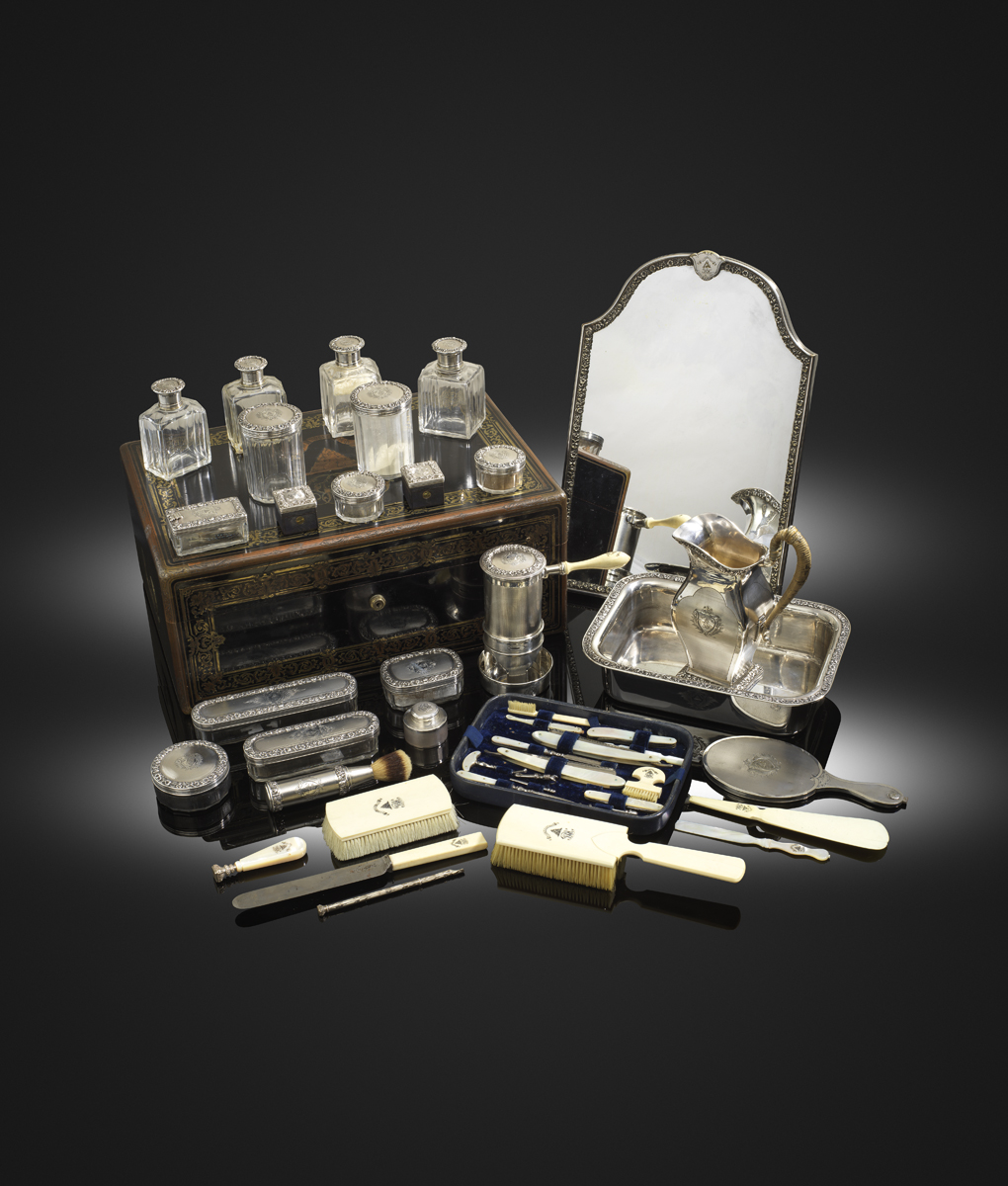 ‡The Haig Toilet Service, a fine 19th century French silver gentleman's travelling toilet service,