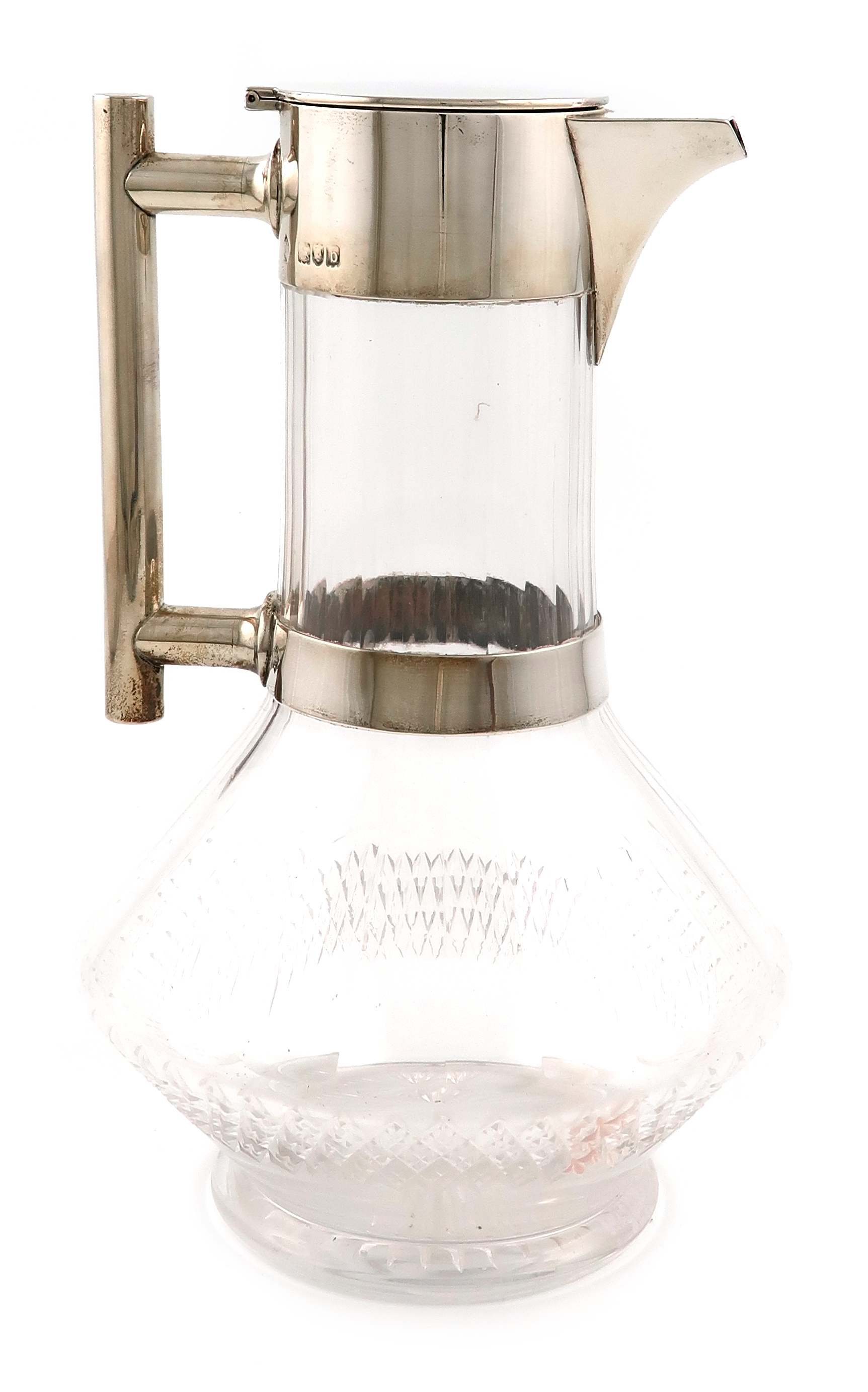A late-Victorian silver-mounted claret jug after Christopher Dresser
