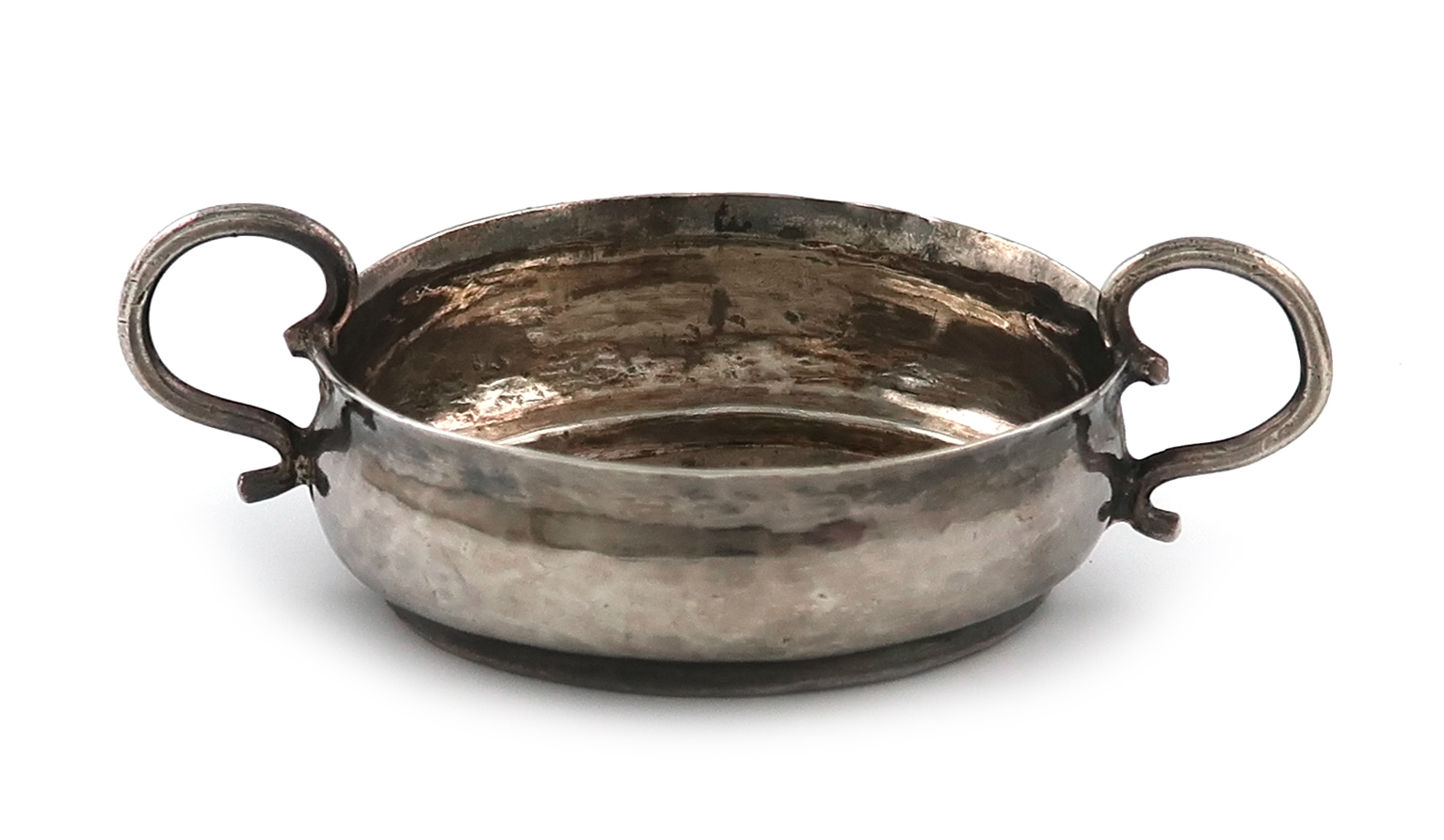 shallow circular form, scroll handles, length handle to handle 7.3cm, approx. weight 0.5oz.