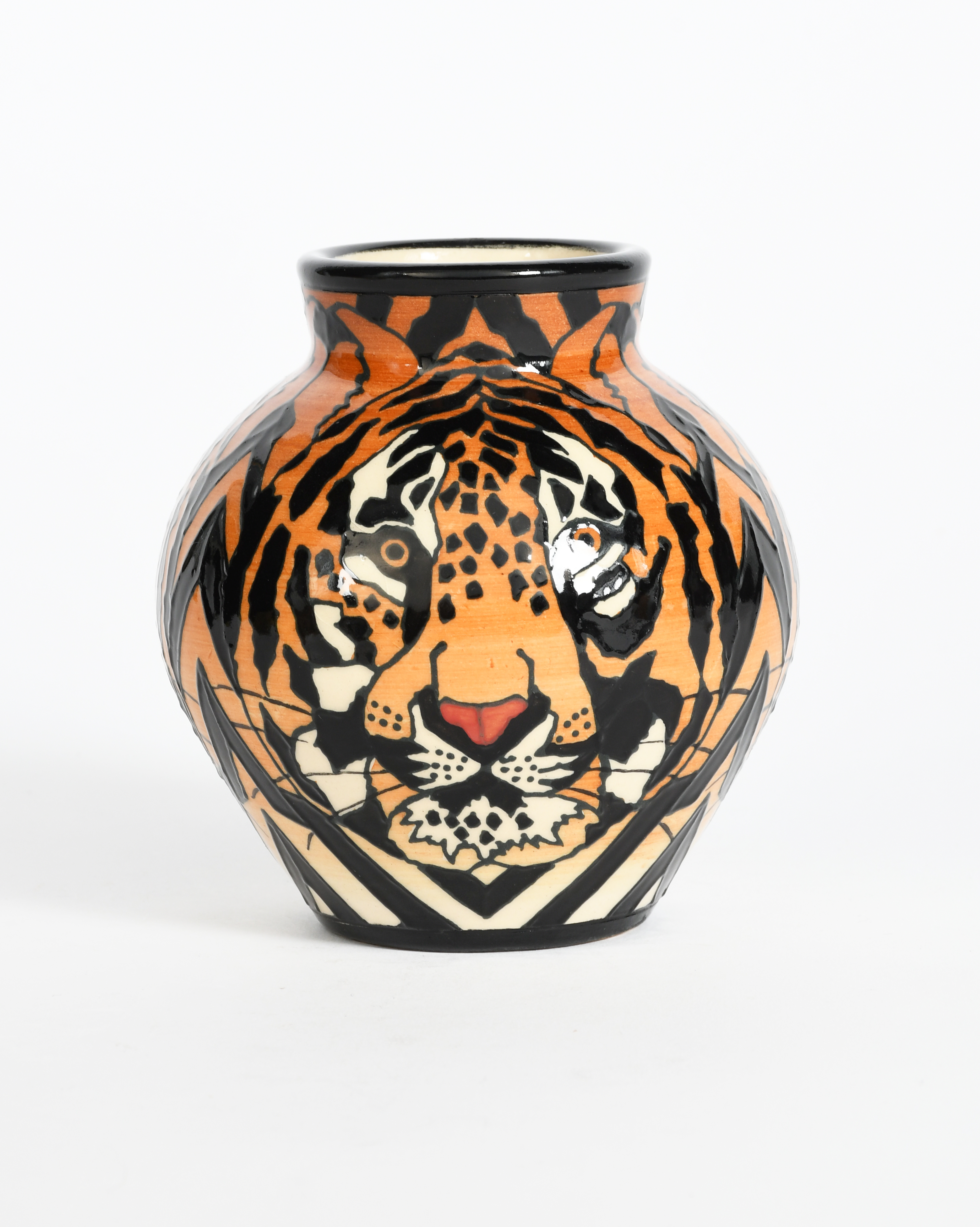 'Tiger' a Dennis China Works trial Mr T vase designed by Sally Tuffin