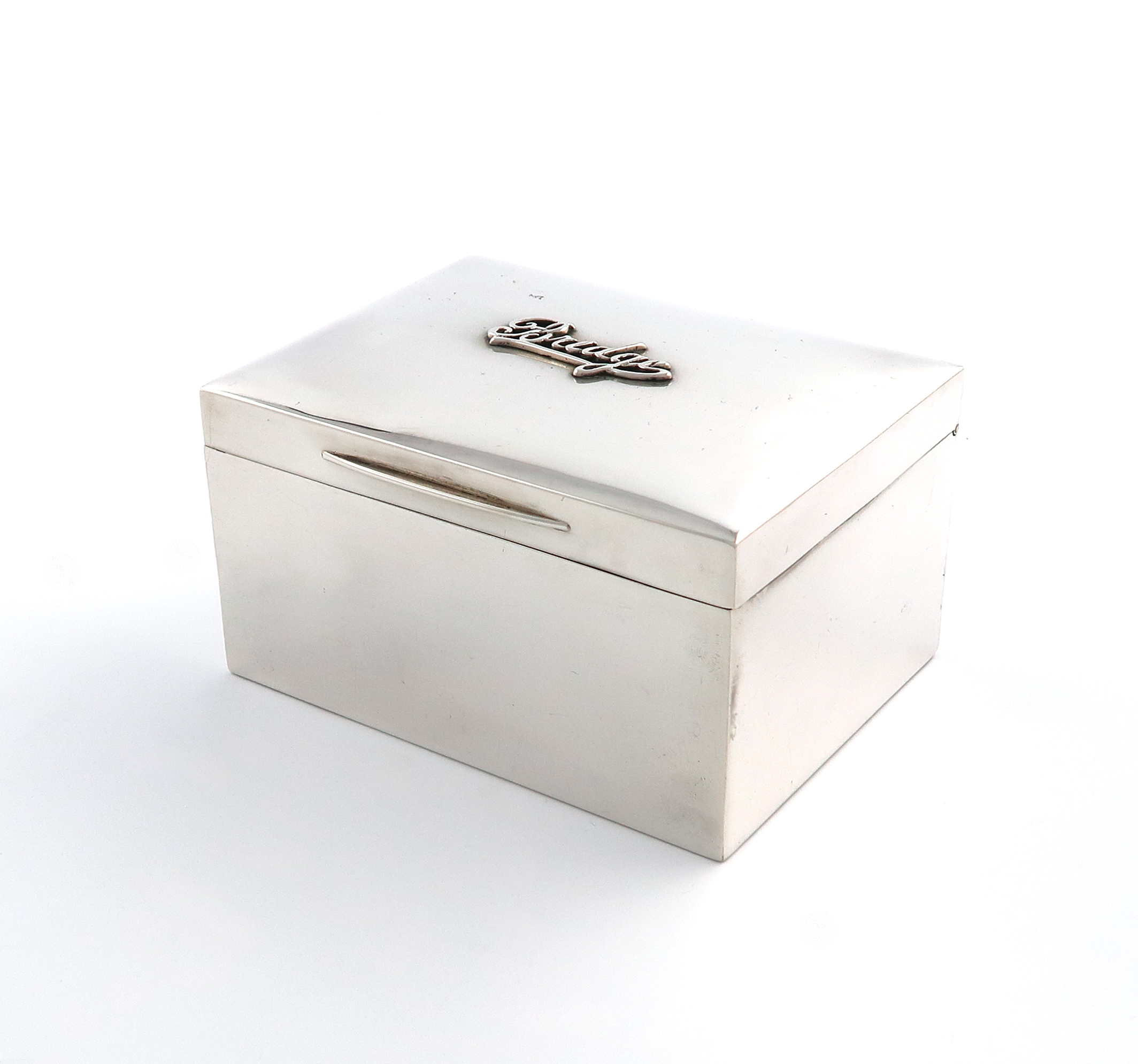 A silver playing cards box for Bridge, by The Goldsmiths and Silversmiths Company