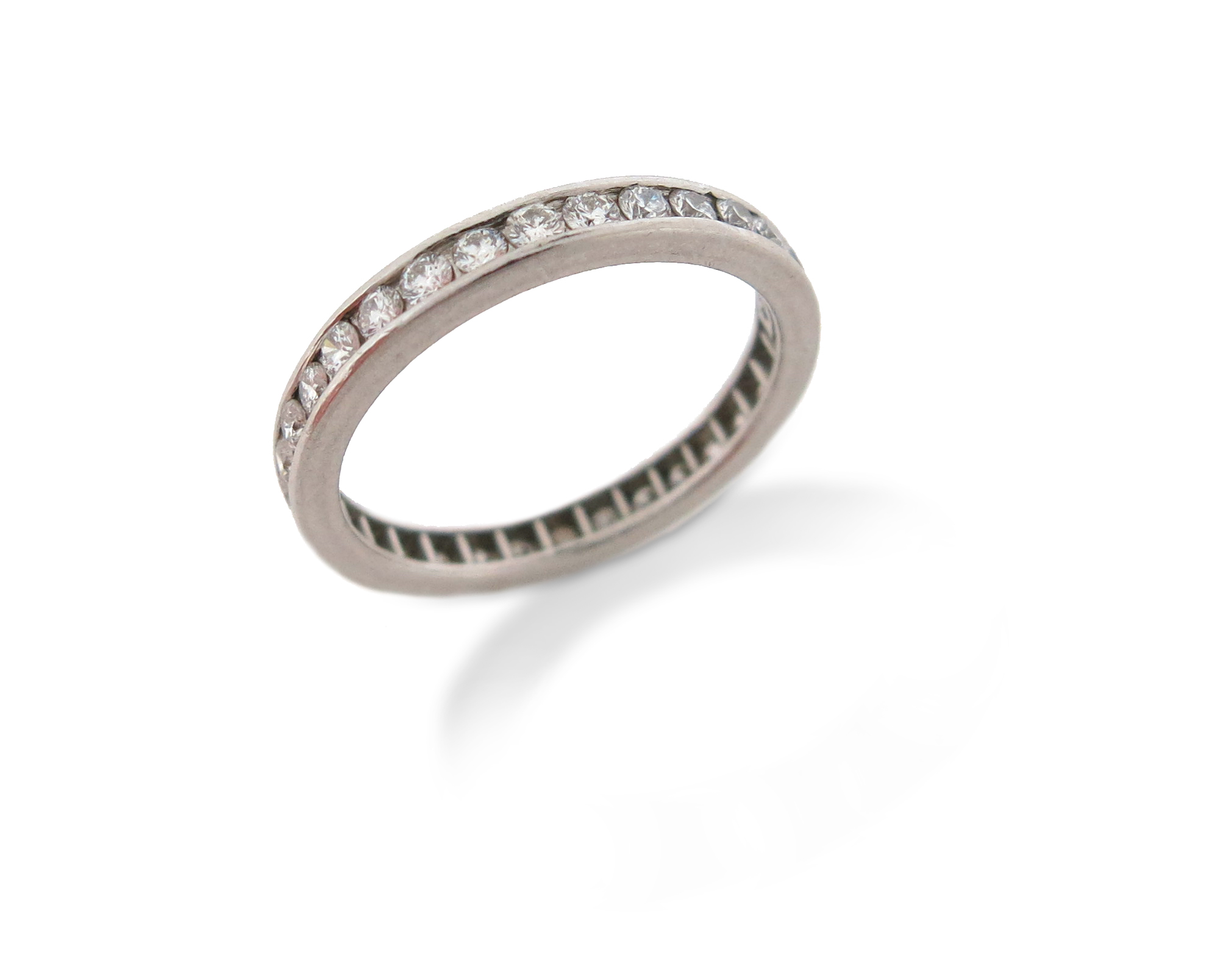 A diamond full-circle eternity ring by Tiffany & Co., the round brilliant-cut diamonds channel-set in platinum, signed Tiffany & Co, size J 1/2