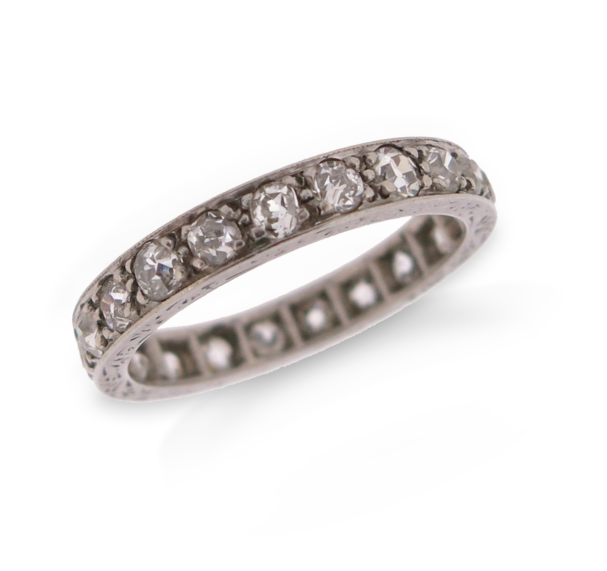 An early 20th century diamond full circle eternity ring, set with old circular-cut diamonds in platinum, size K 1/2