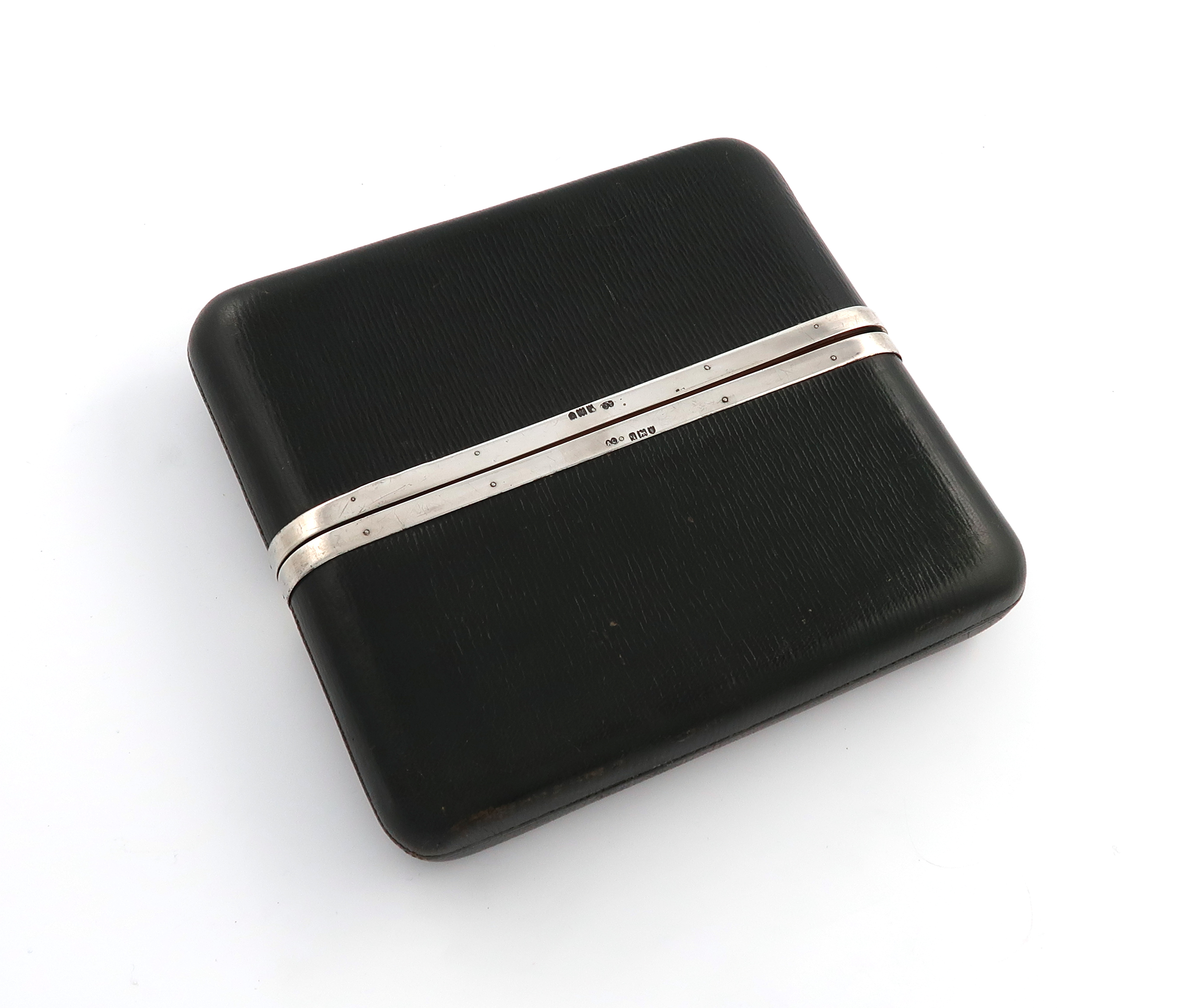 rounded rectangular form, plain mounts, each interior with four compartments, length 20.5cm.