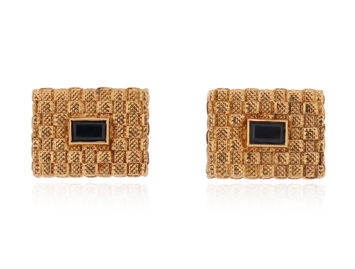 A pair of French sapphire and gold cufflinks by Lasbleitz Fourniere Vitello