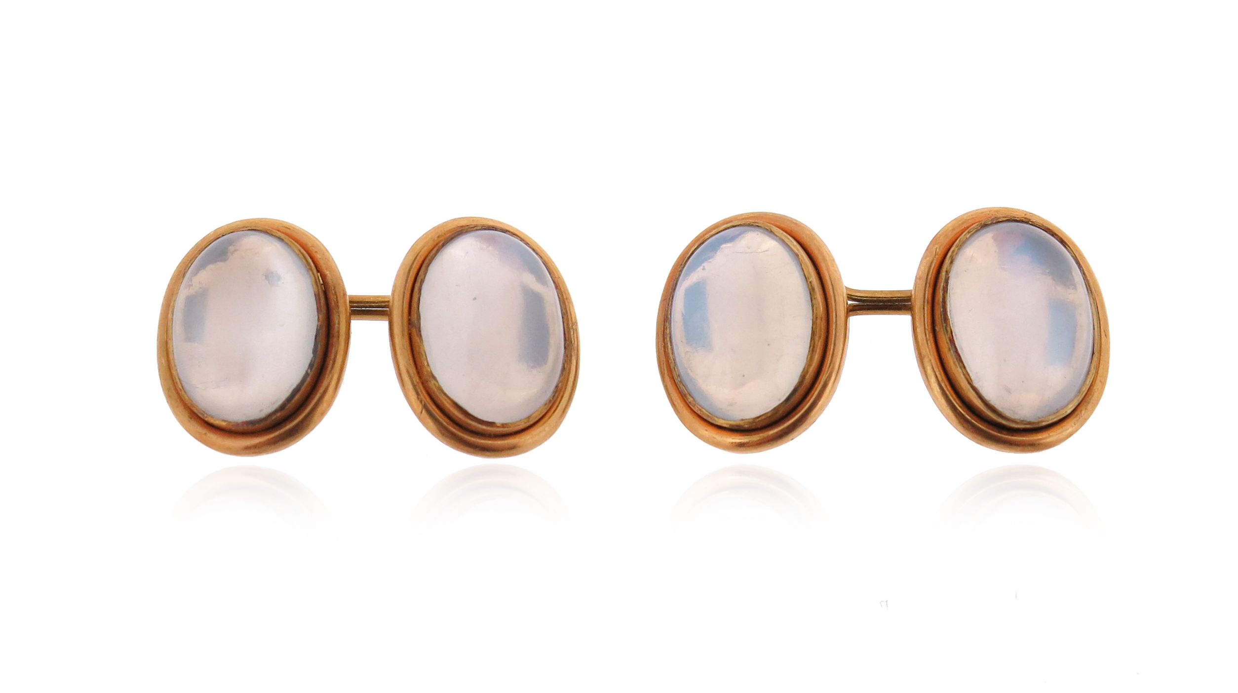 A pair of oval moonstone and gold cufflinks