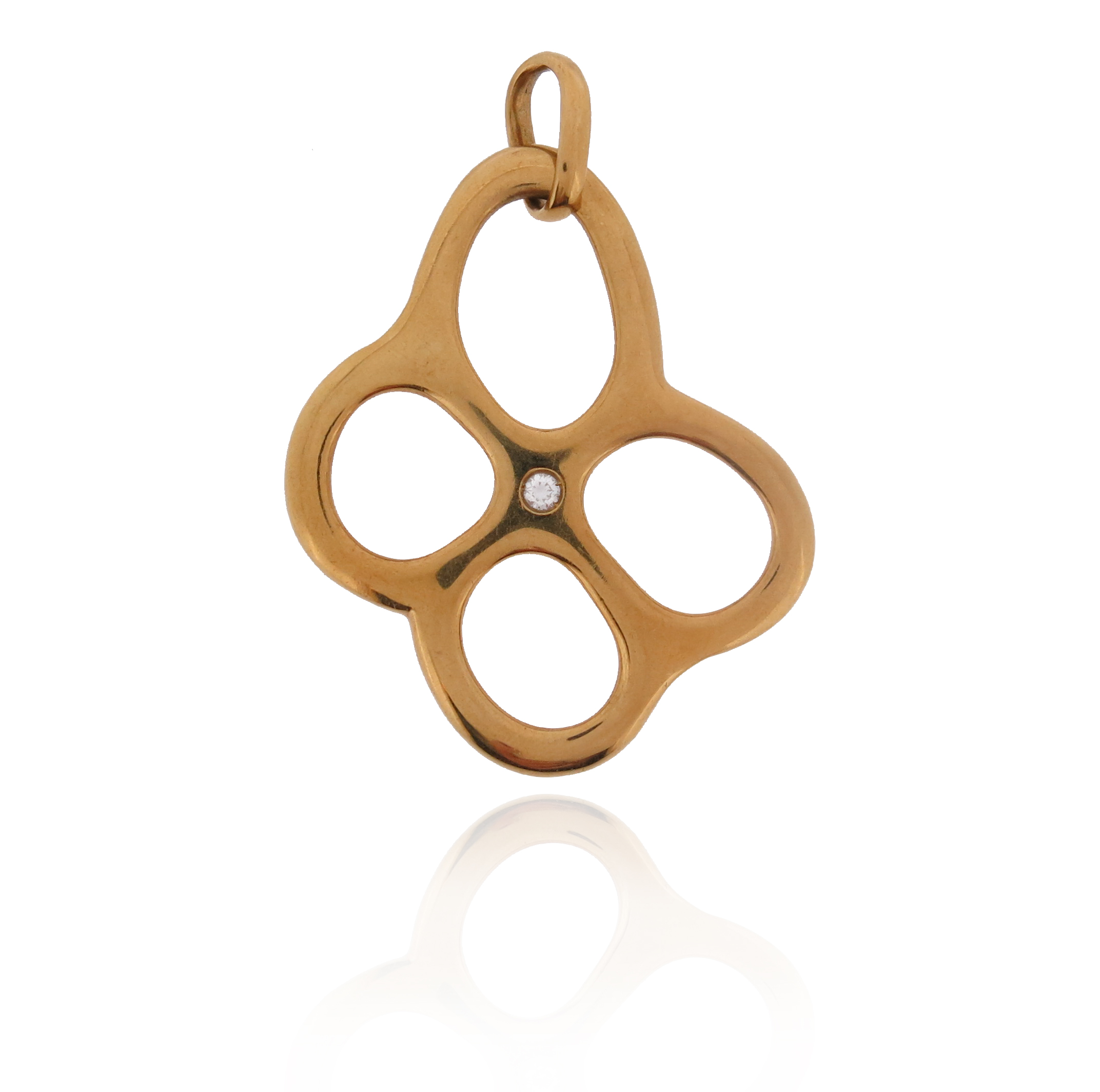 A diamond-set gold pendant by Gavello, centred with a round brilliant-cut diamond and set in yellow gold, signed Gavello, 5cm high including bale, 16g