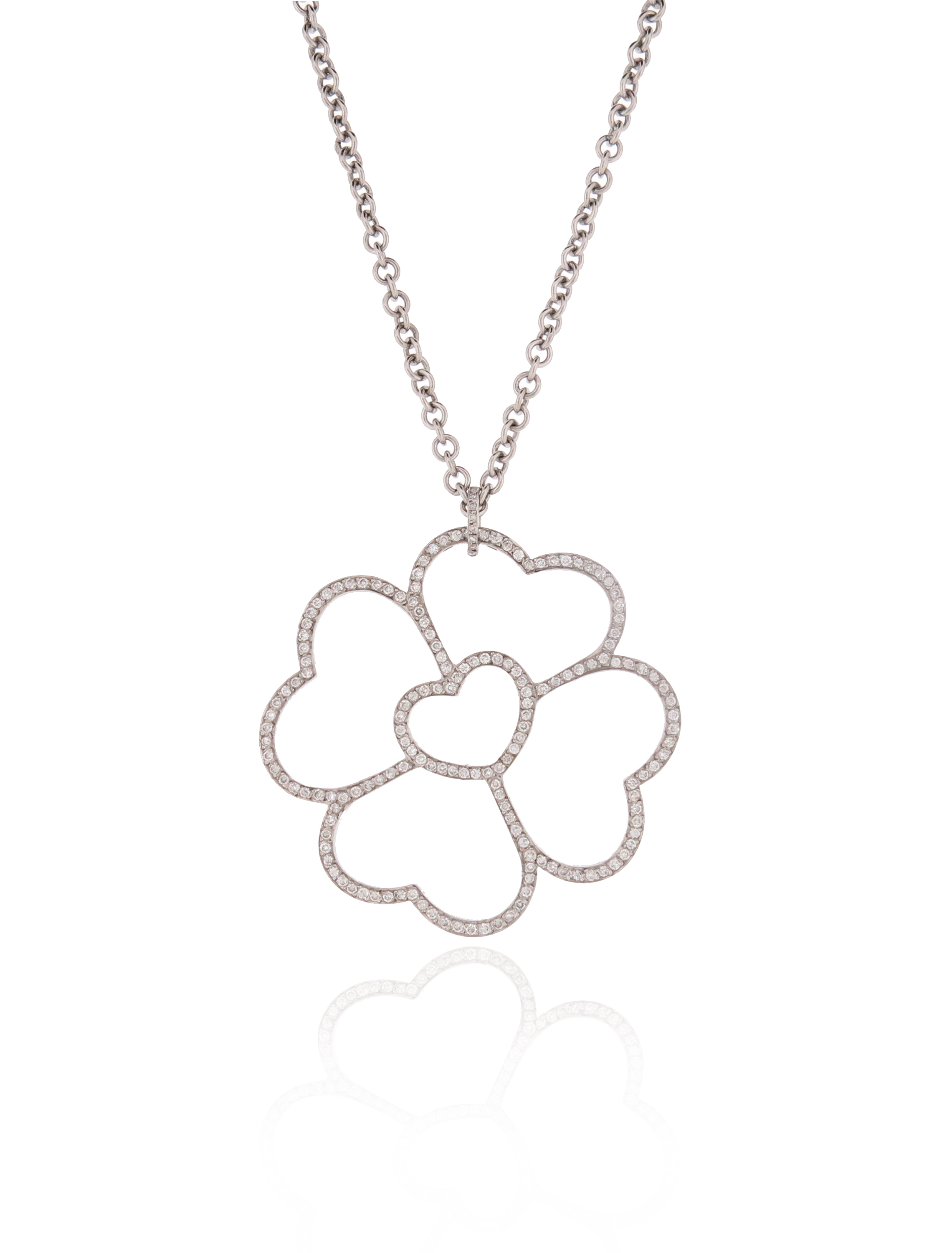 A diamond-set pendant by Ileana Makri, the openwork foliate pendant set with round brilliant-cut diamonds, with a diamond-set bale in white gold, on a white gold neck chain, with initials IM to the clasp, pendant 5.5cm high, chain 82cm long