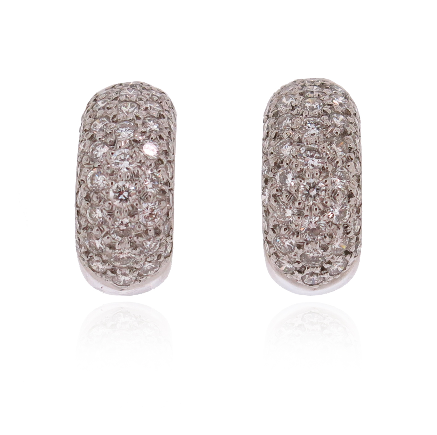 A pair of diamond bombe earrings, pave-set with round brilliant-cut diamonds which weigh approximately 3.25cts in total, set in white gold, 18mm high, post and clip fittings
