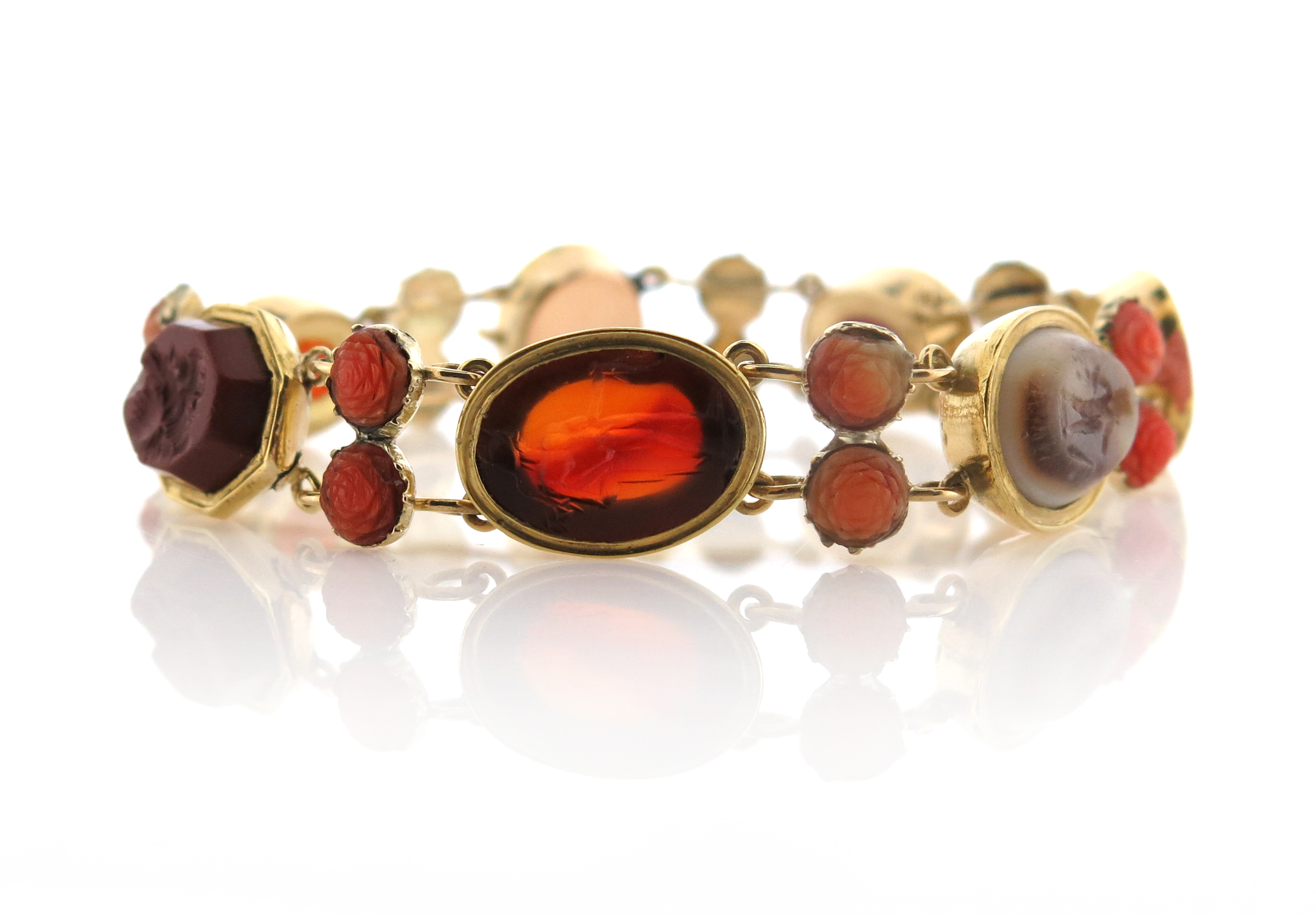 A 19th century gold bracelet set with seven ancient Roman hardstone intaglios