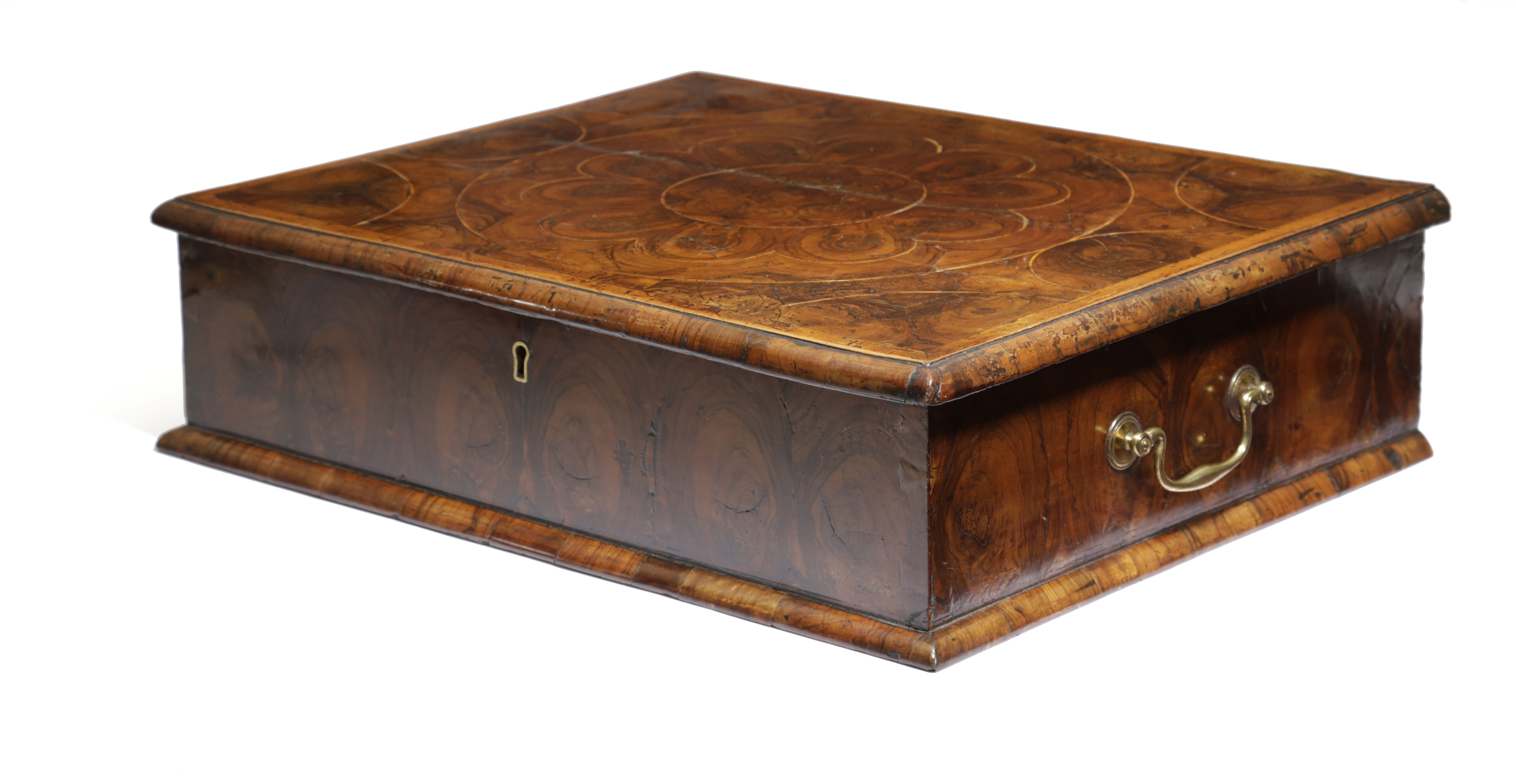 A LARGE WILLIAM AND MARY OYSTER VENEERED LACE BOX